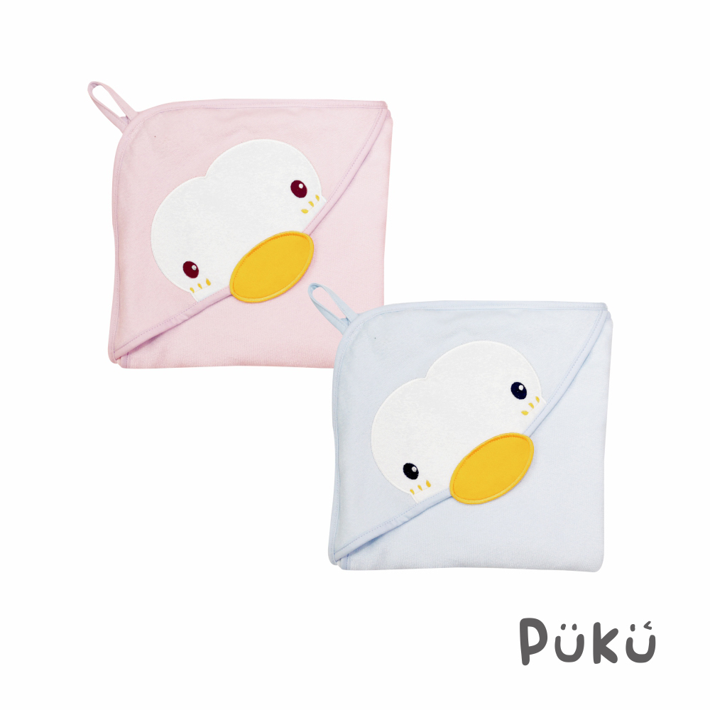 PUKU藍色企鵝 造型連帽紗布浴巾75x75cm(兩色)水色|粉色Bath Robes, Towels & Wash ClothsPUKU 藍色企鵝官方旗艦店