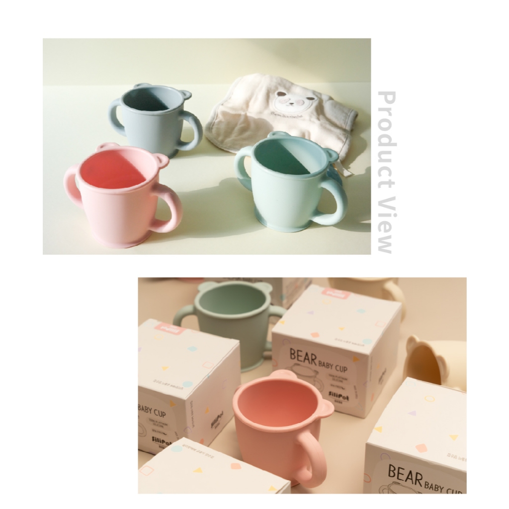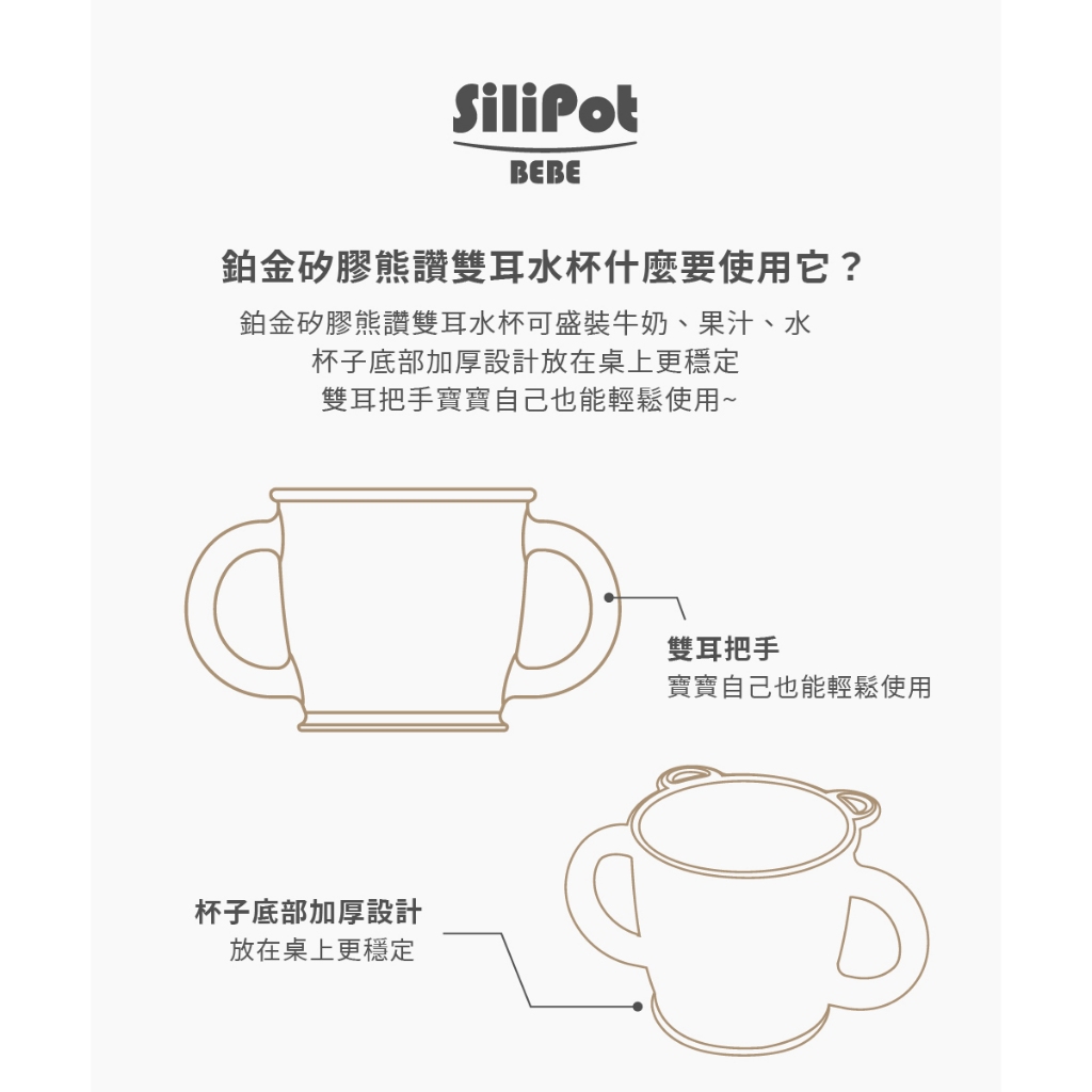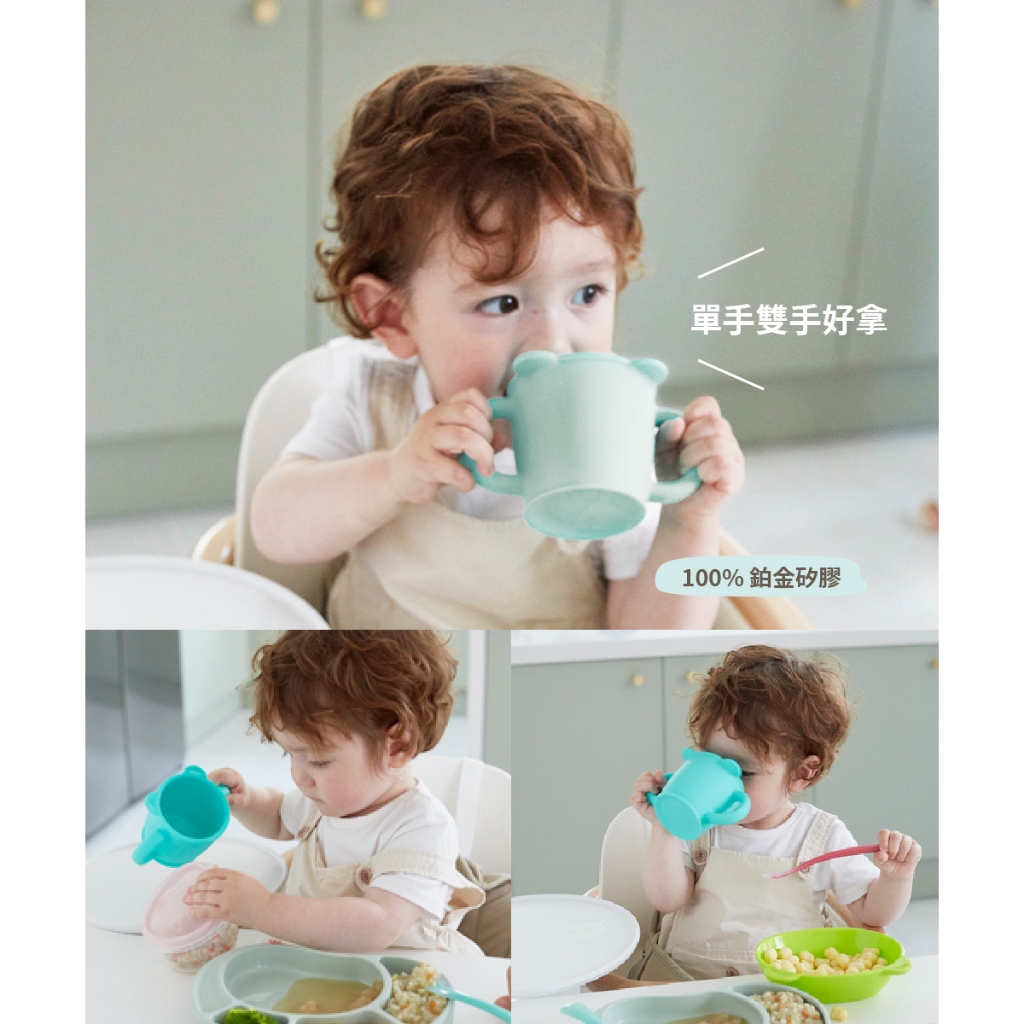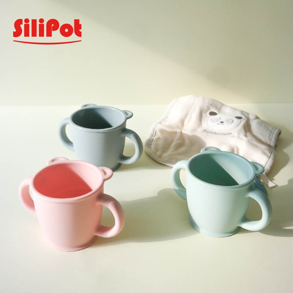 【韓國 SILIPOT】鉑金矽膠熊讚雙耳水杯 兒童雙手杯(喝水杯 喝水練習杯 兒童水杯 雙耳杯)小麥黃|薄荷綠|豆沙粉|冷灰UtensilsPomier朴蜜兒
