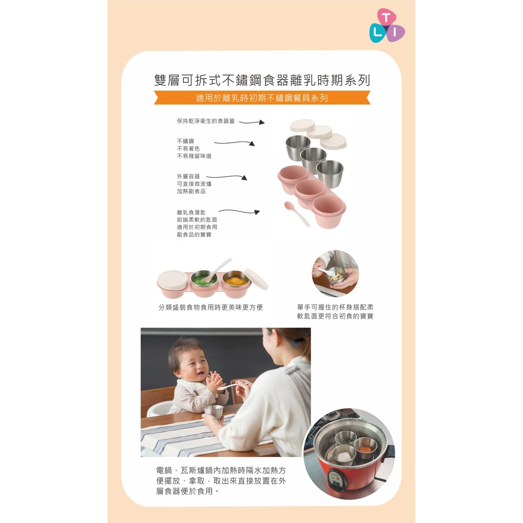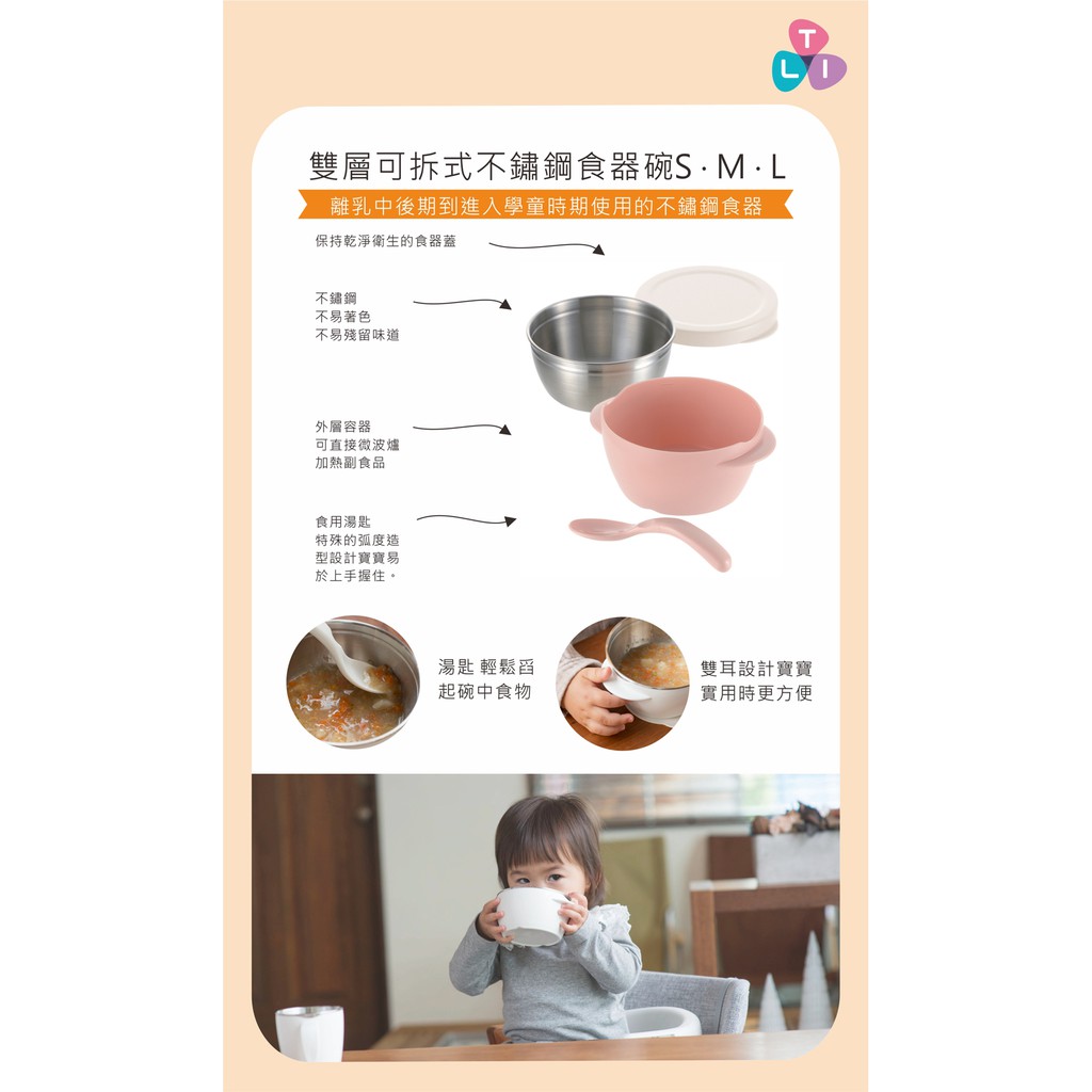 Richell 利其爾|TLI雙層可拆式不鏽鋼碗(附蓋)大-露營碗/副食品碗/寶寶餐碗米色L號|粉紅色L號|藍色L號UtensilsRichell台灣官方旗艦館