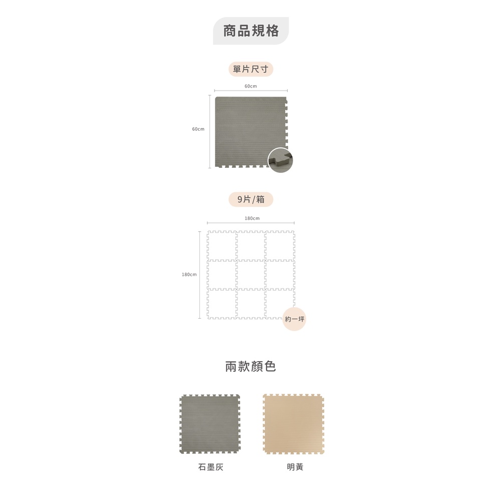 【Pato Pato】嬰幼兒抗寒草蓆紋 60x60x1.2cm巧拼地墊 / 石墨灰 / 明黃 1組9片石墨灰 / 9片|明黃 / 9片Baby & Toddler ToysPato Pato 官方旗艦館 / 巧拼地墊 / 酵素清潔液 / 台灣製造