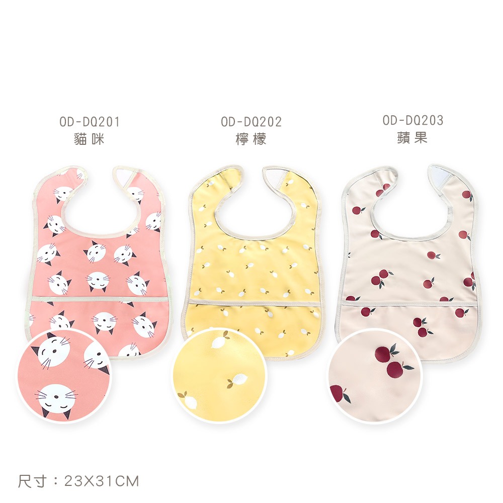 兒童防水圍兜 吃飯圍兜 防水圍兜 口水巾 可愛圍兜 【旺達棉品】OD-DQ202貓咪01|檸檬02|蘋果-03Bibsoneder旺達棉品品牌旗艦店
