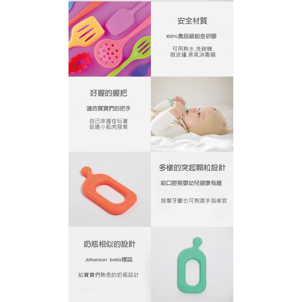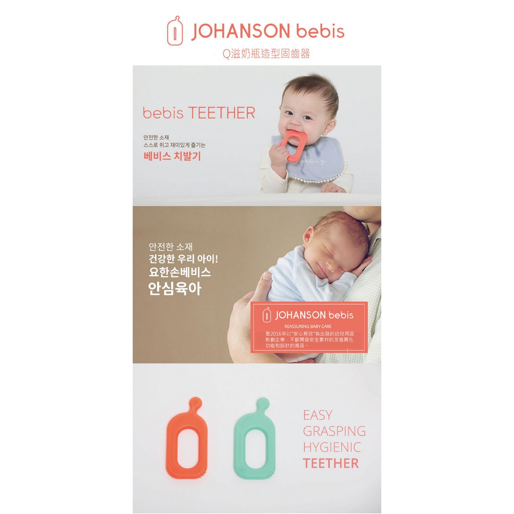 【韓國JOHANSON】Q滋奶瓶造型固齒器(磨牙棒 鉑金矽膠)珊瑚粉|蒂芬妮綠Baby & Toddler ToysPomier朴蜜兒