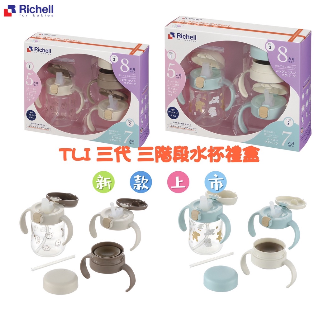 Richell 利其爾|TLI三代 3階段水杯禮盒-(兩款/贈品牌紙袋/送禮/彌月禮)刺蝟同萌|布逗兒UtensilsRichell台灣官方旗艦館