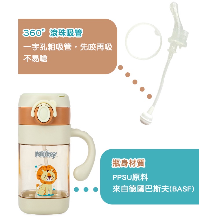 【Nuby】PPSU學習水杯(粗吸管-300ml)上蓋吸管配件|配件購買 清洗 替換上蓋配件-旺旺來-綠(無吸管/杯體)|上蓋配件-棕獅子-咖(無吸管/杯體)|吸管配件(無上蓋/杯體)|上蓋配件-無尾熊-粉(無吸管/杯體)UtensilsNuby官方旗艦店
