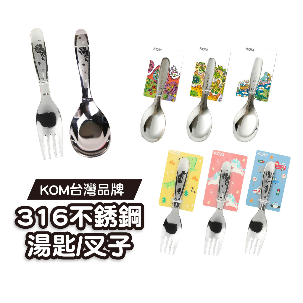 【台灣品牌 KOM】316不銹鋼湯匙 單入 不銹鋼叉子 SGS認證 平底湯匙 不銹鋼湯匙 兒童湯匙 兒童叉子 餐具