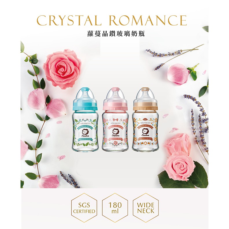 小獅王辛巴 蘿蔓晶鑽寬口玻璃小奶瓶180ml-新生專用玫瑰(粉紅)|豔陽(咖啡)|香草(天藍)Bottle-feedingSimba小獅王辛巴 官方旗艦店