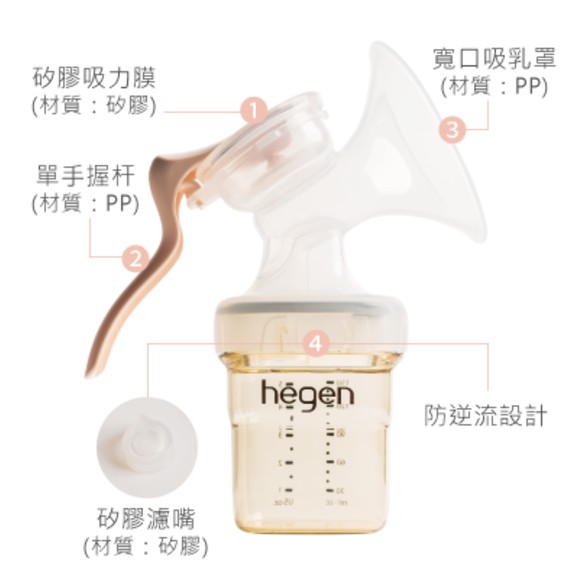 新加坡 hegen 優雅輕柔手動擠乳器 / 手動擠乳組 (SoftSqround™)