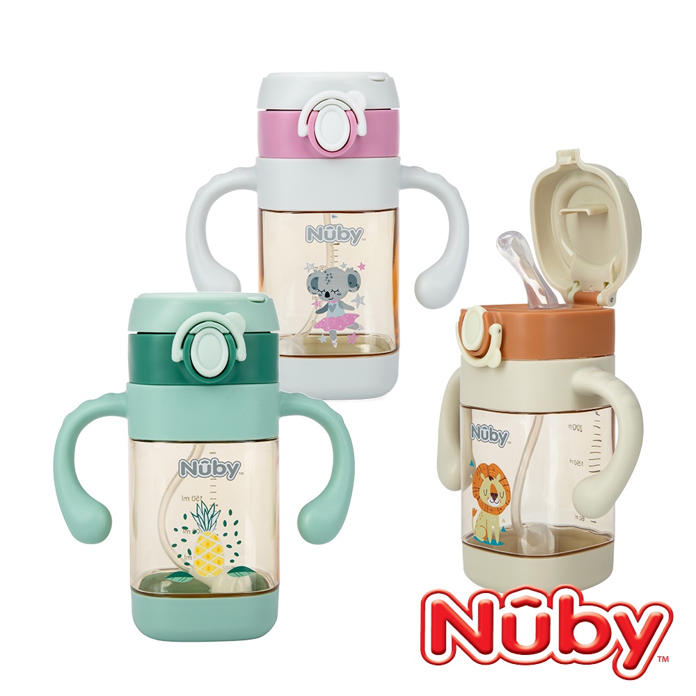 【Nuby】PPSU學習水杯(粗吸管-300ml)|配件可另購 寶寶學飲杯 防漏水杯無尾熊|旺旺來|棕獅子UtensilsNuby官方旗艦店