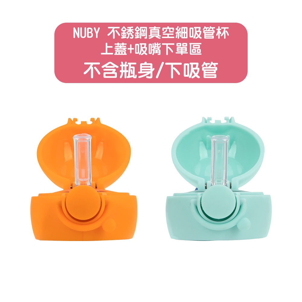 【Nuby】316不銹鋼真空細吸管300ml 上蓋+吸嘴配件|不含下方吸管大嘴鳥-橘色,僅上蓋+吸嘴,不含下吸管|鯨魚-淺藍,僅上蓋+吸嘴,不含下吸管UtensilsNuby官方旗艦店