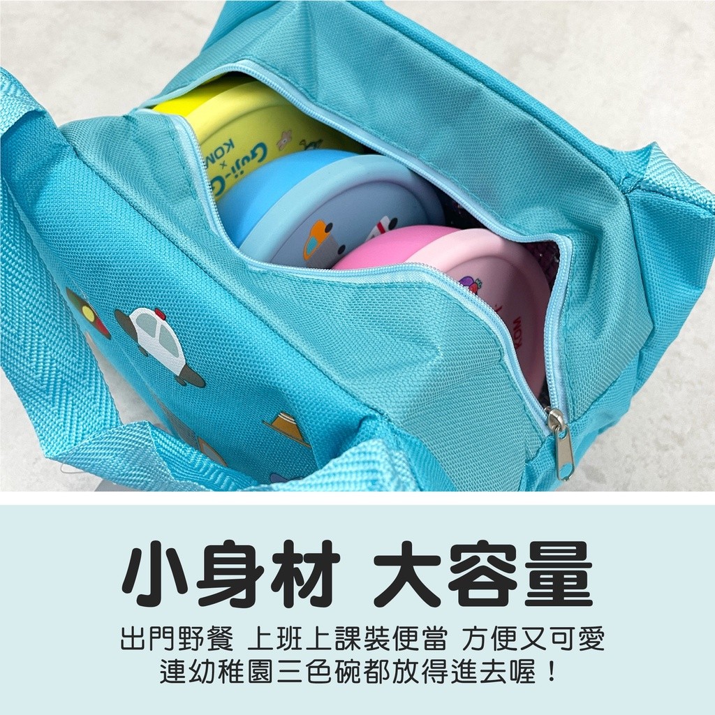 【台灣品牌 三色碗餐袋】KOM保溫餐袋 餐袋 便當袋 幼兒園餐袋 保溫保冷便當袋 保溫袋 保溫便當袋 兒童餐袋聯名款-綠 【愛吃青菜的鱷魚】|聯名款-黃 【Guji】|聯名款-粉 【愛吃水果的牛】|黃【恐龍】|藍【小汽車】|粉【獨角獸】Bottle-feedingPeNi培婗