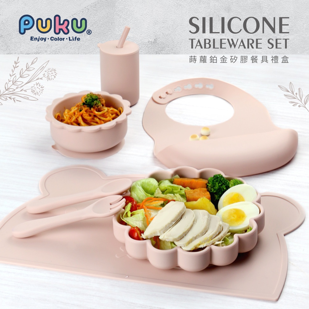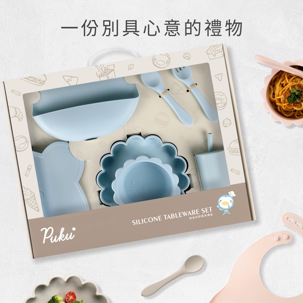 PUKU藍色企鵝 蒔蘿鉑金矽膠餐具禮盒7件組-(三色)茉莉藍|蔓茶粉|松花杏UtensilsPUKU 藍色企鵝官方旗艦店