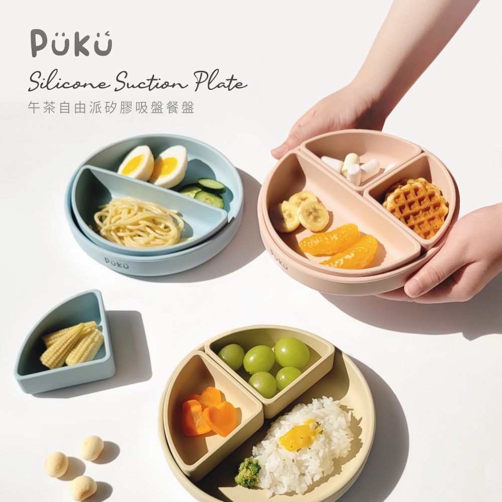 PUKU藍色企鵝 午茶自由派矽膠吸盤餐盤(三色)藍莓派|草莓派|杏桃派UtensilsPUKU 藍色企鵝官方旗艦店