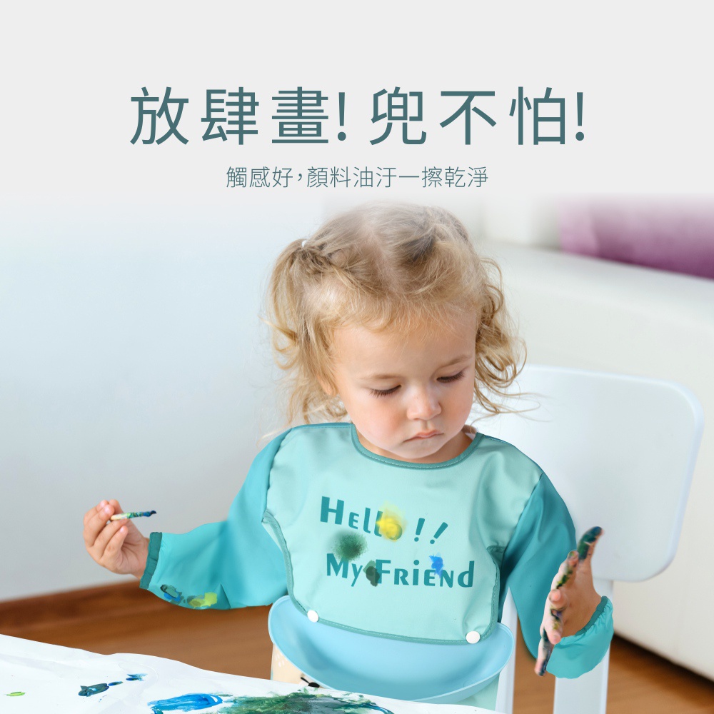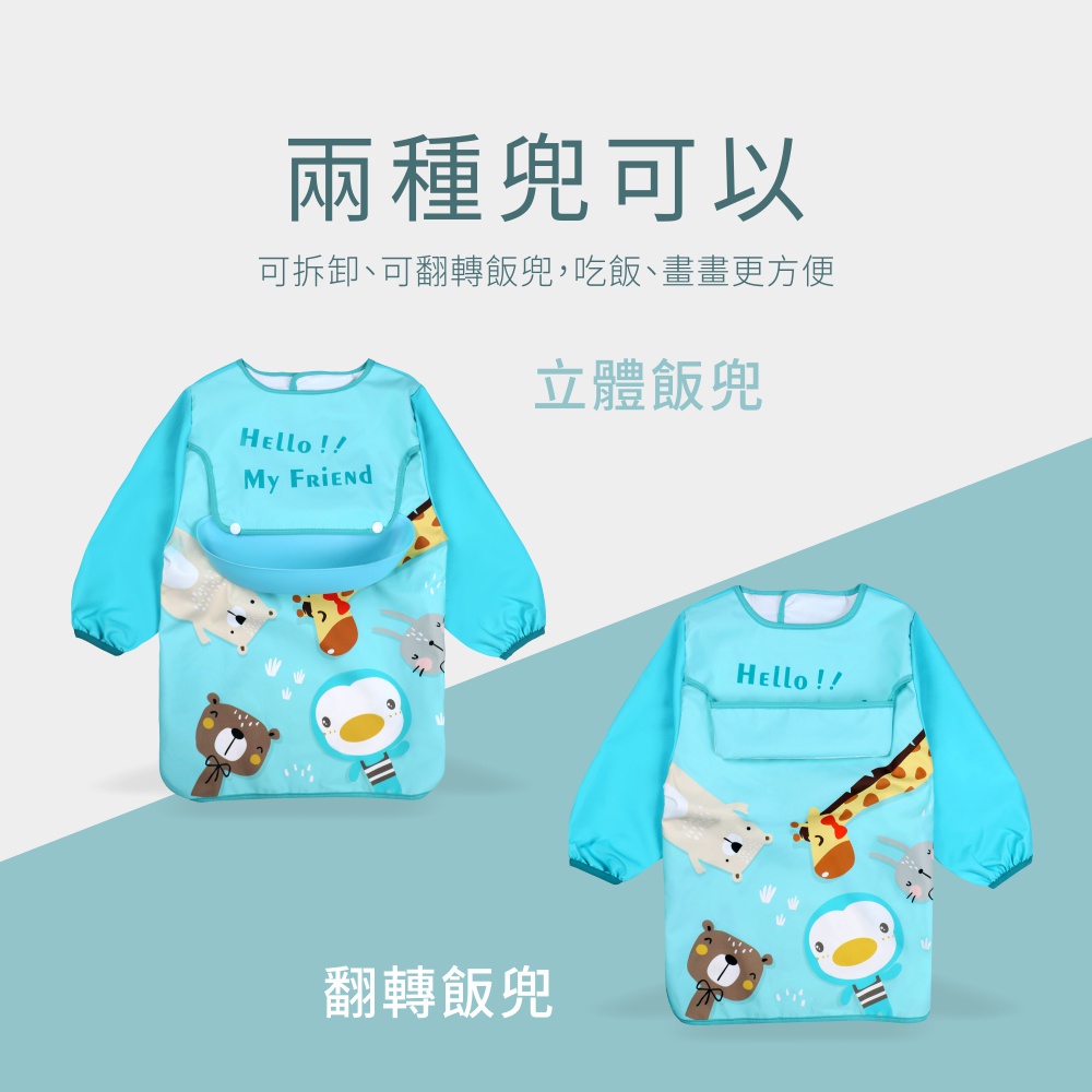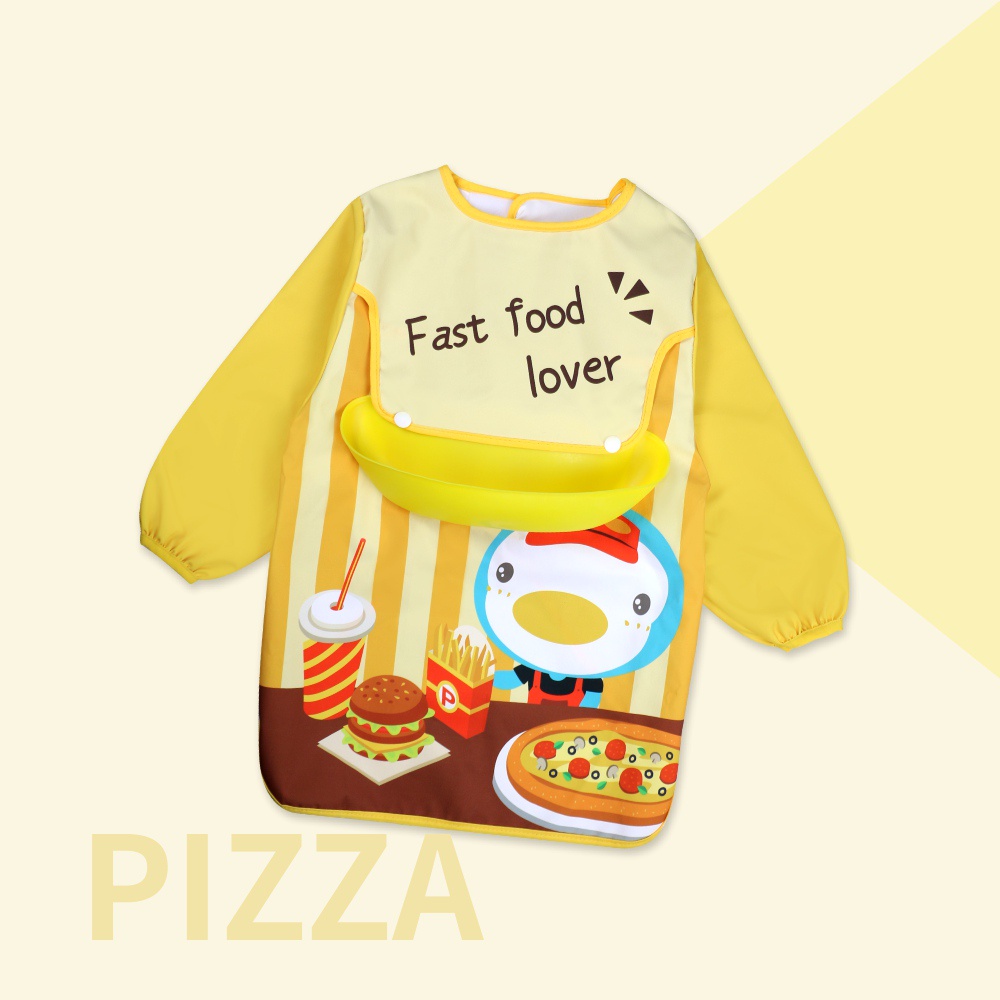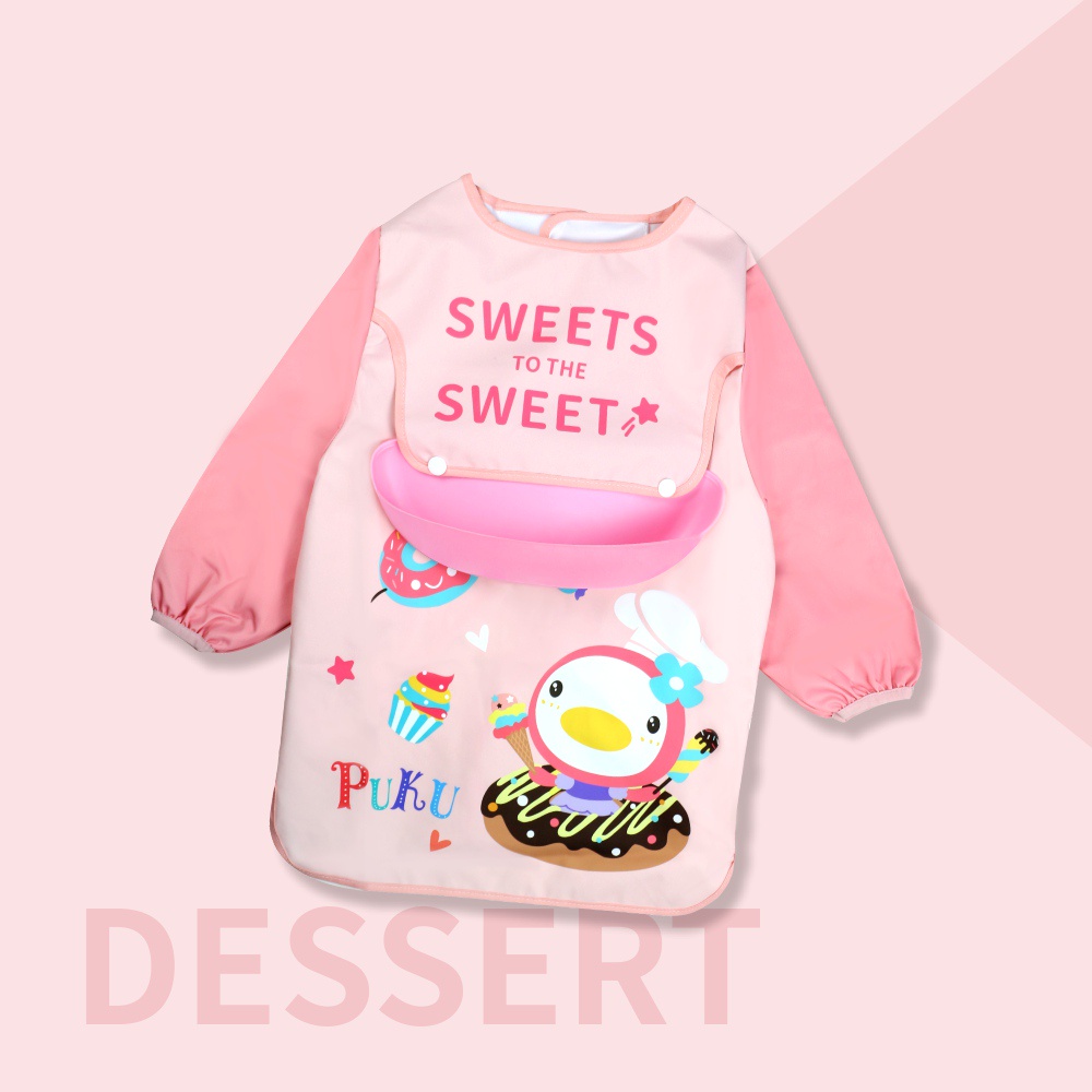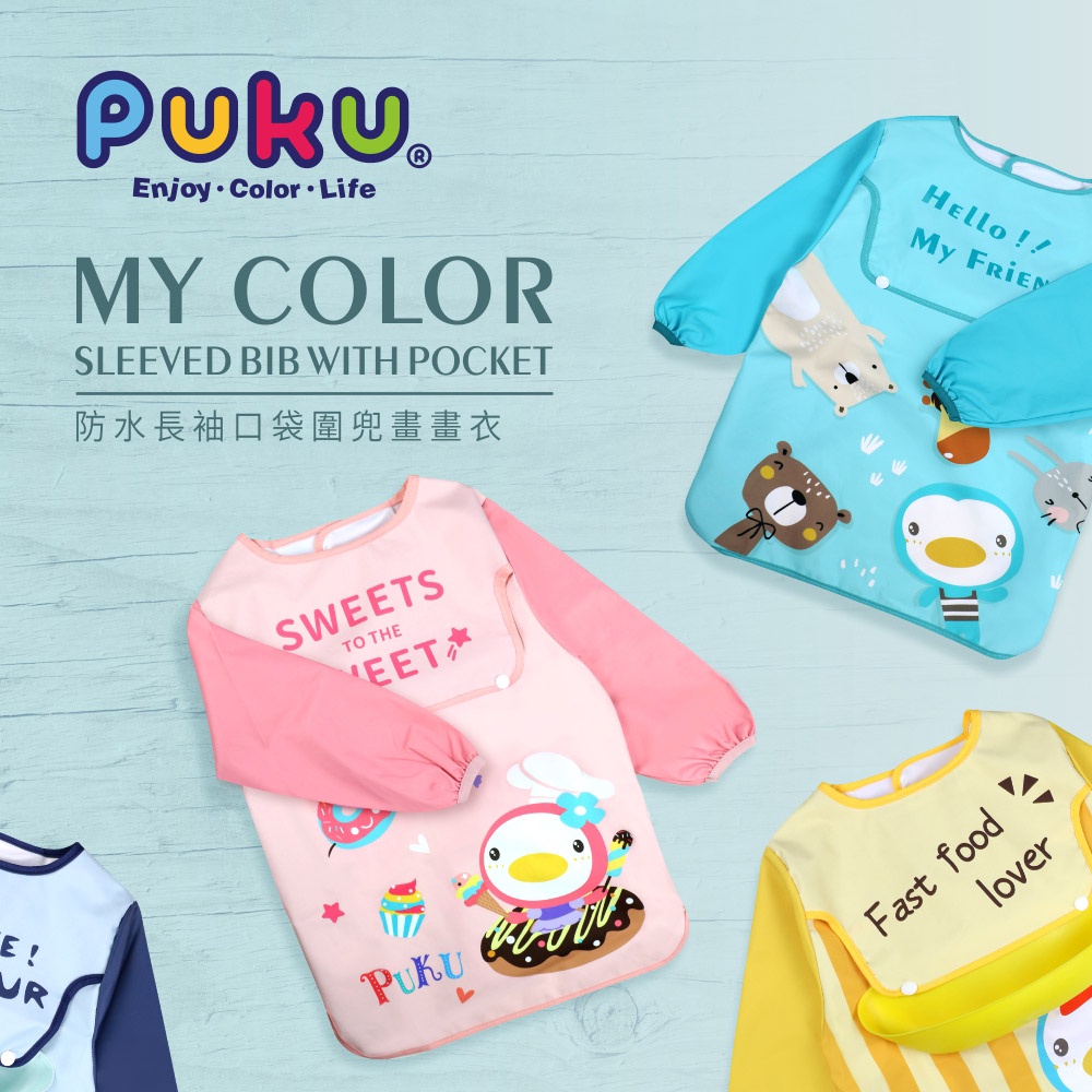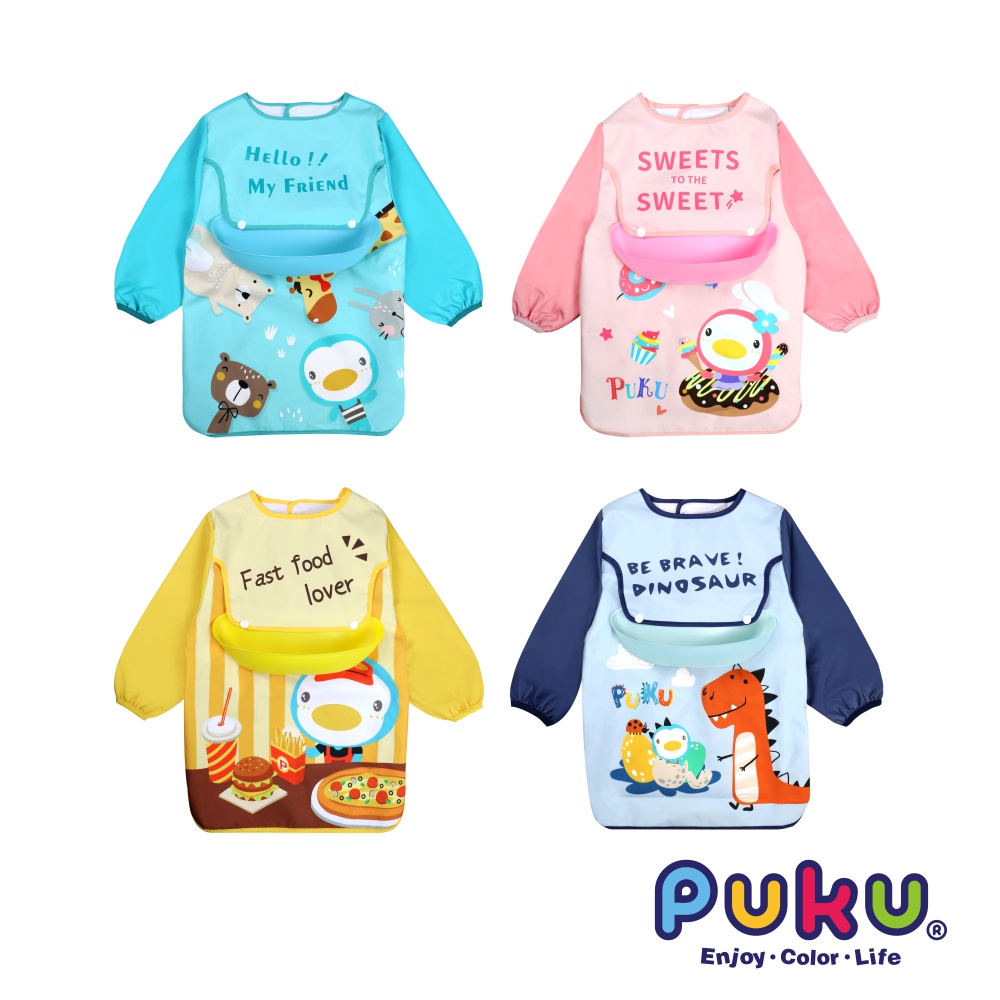PUKU藍色企鵝 My Color 防水長袖圍兜畫畫衣動物水|甜點粉|披薩黃|恐龍藍BibsPUKU 藍色企鵝官方旗艦店