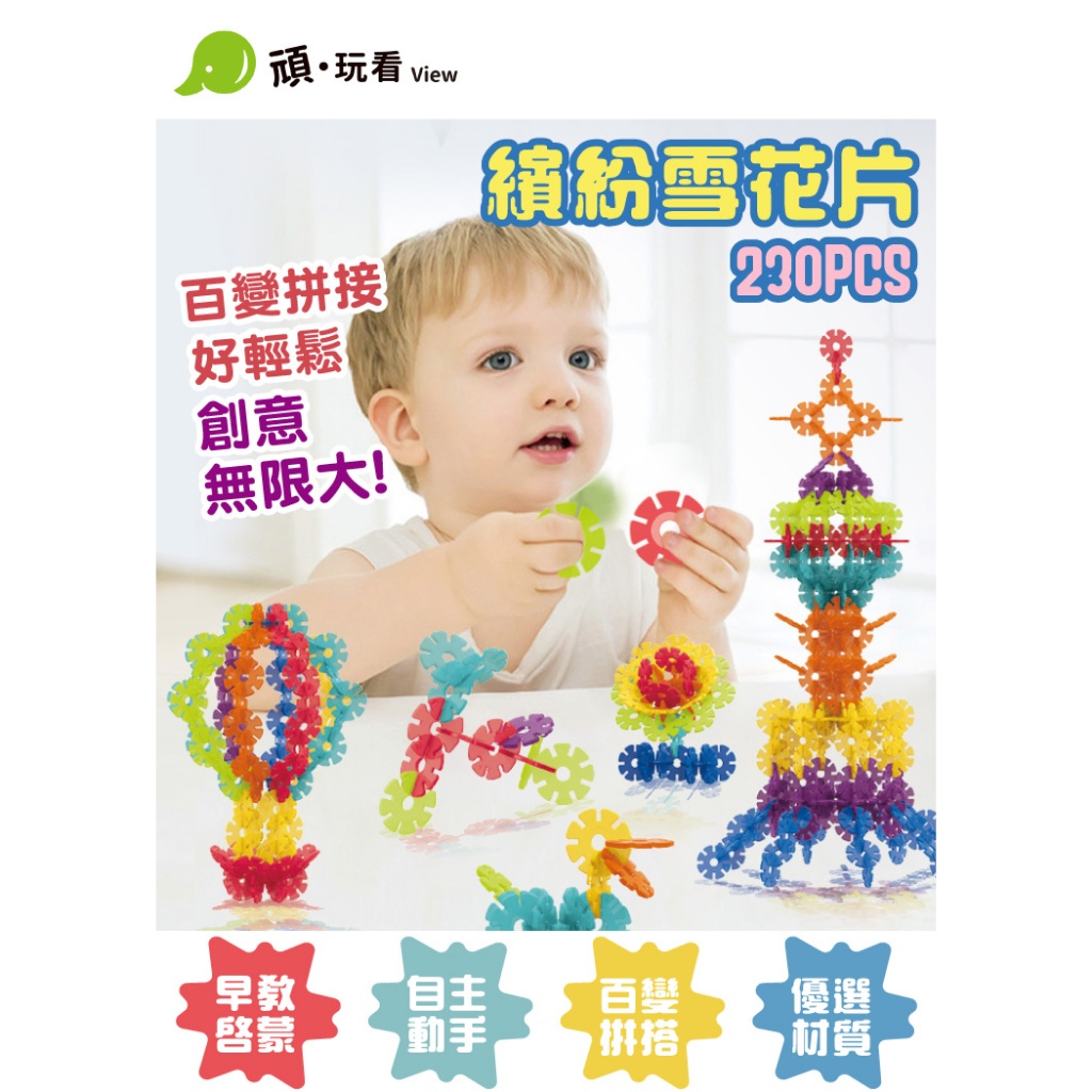 【台灣現貨】繽紛雪花片 230PCS 雪花片 益智積木 積木玩具 拼插積木 拼搭玩具 早教玩具 生日禮物 頑玩具