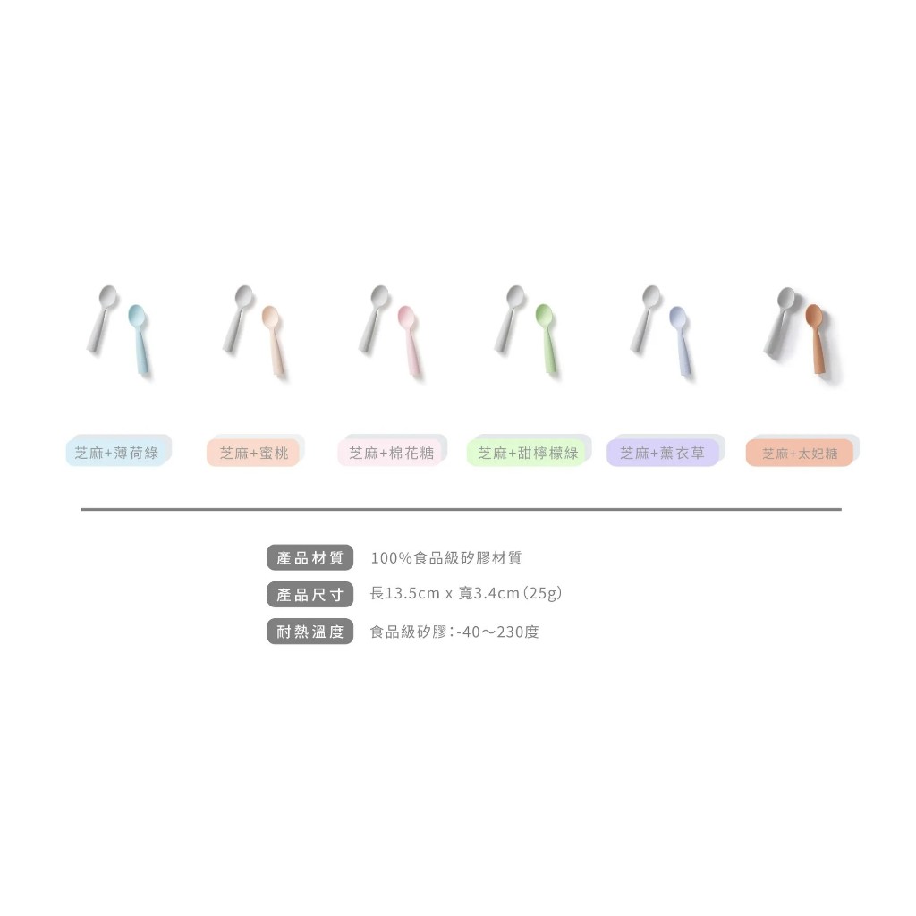 美國 Miniware 天然寶貝矽膠湯匙組 (2入一組) – 多款組合芝麻+蜜桃|芝麻+薄荷|芝麻+棉花糖|芝麻+太妃糖|單隻不挑色(OPP袋裝)UtensilsnanaBABY寶寶生活精品