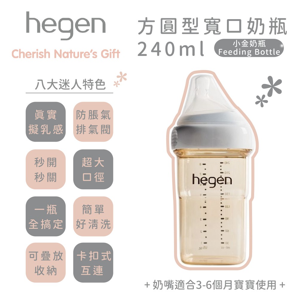 新加坡 hegen PCTO™ 金色奇蹟PPSU多功能方圓型寬口奶瓶 240ml象牙白|嫣粉|沁藍|漾紫Bottle-feedingnanaBABY寶寶生活精品