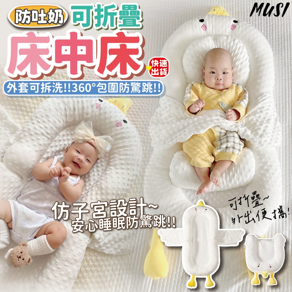[隔日發貨]床中床 嬰兒床 嬰兒床中床 可折疊仿子宮設計 寶寶睡眠更安心 床中床嬰兒 寶寶睡床 折疊嬰兒床防吐奶可折疊床中床-大白鵝+防吐奶 現貨Edge & Corner GuardsMUSI 口罩&包包帽子 專賣