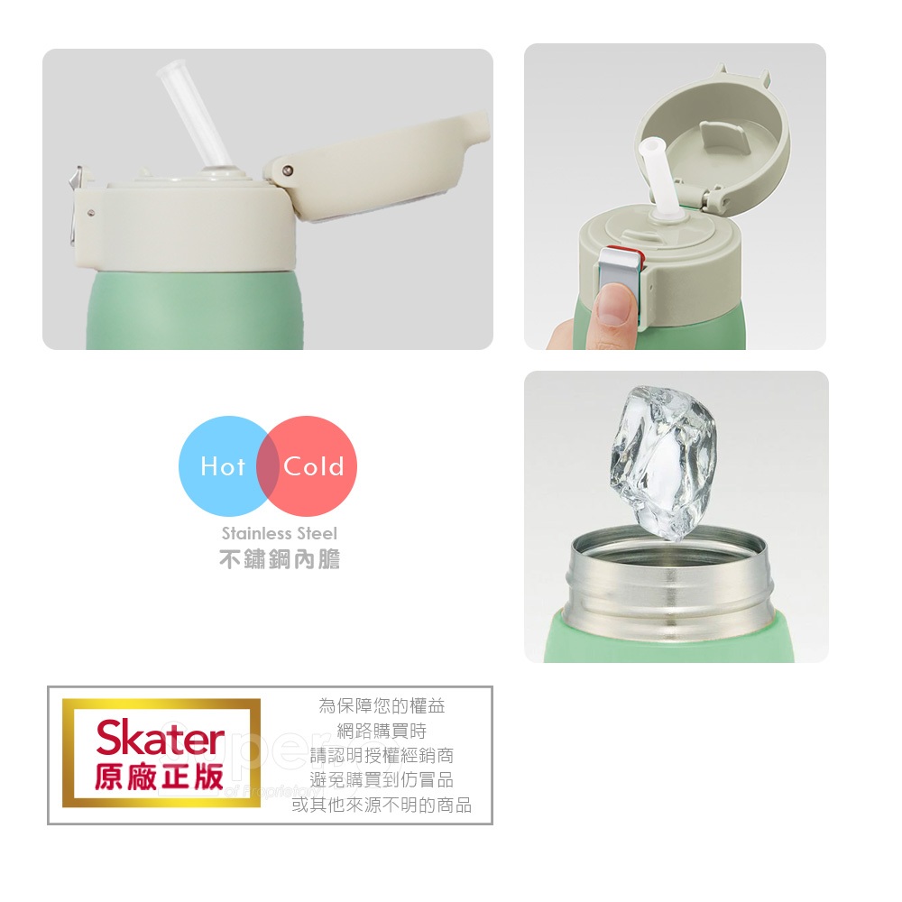 Skater 不鏽鋼吸管保溫瓶(480ml)米奇|維尼|櫻花粉|蘋果綠|KITTYUtensilsSkater