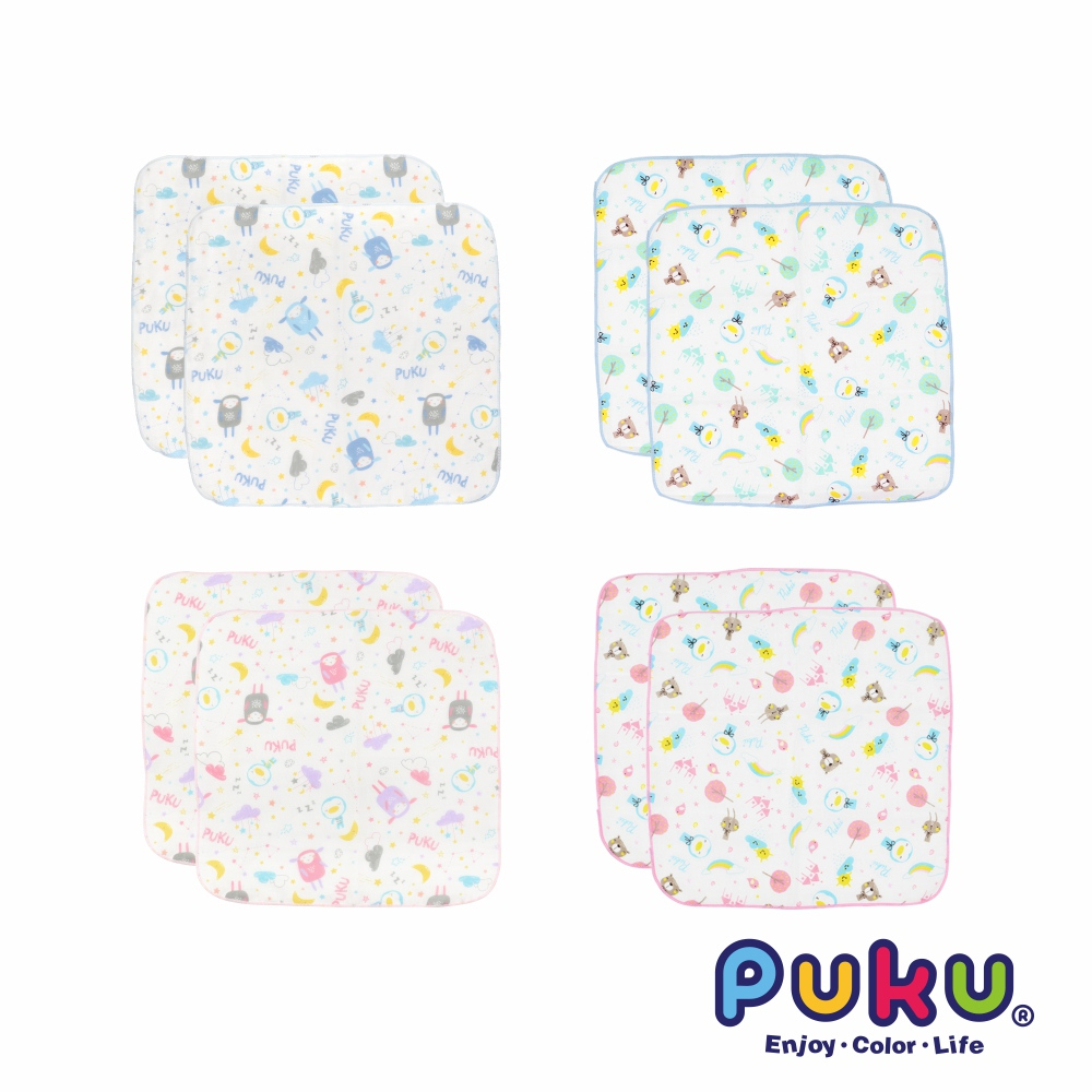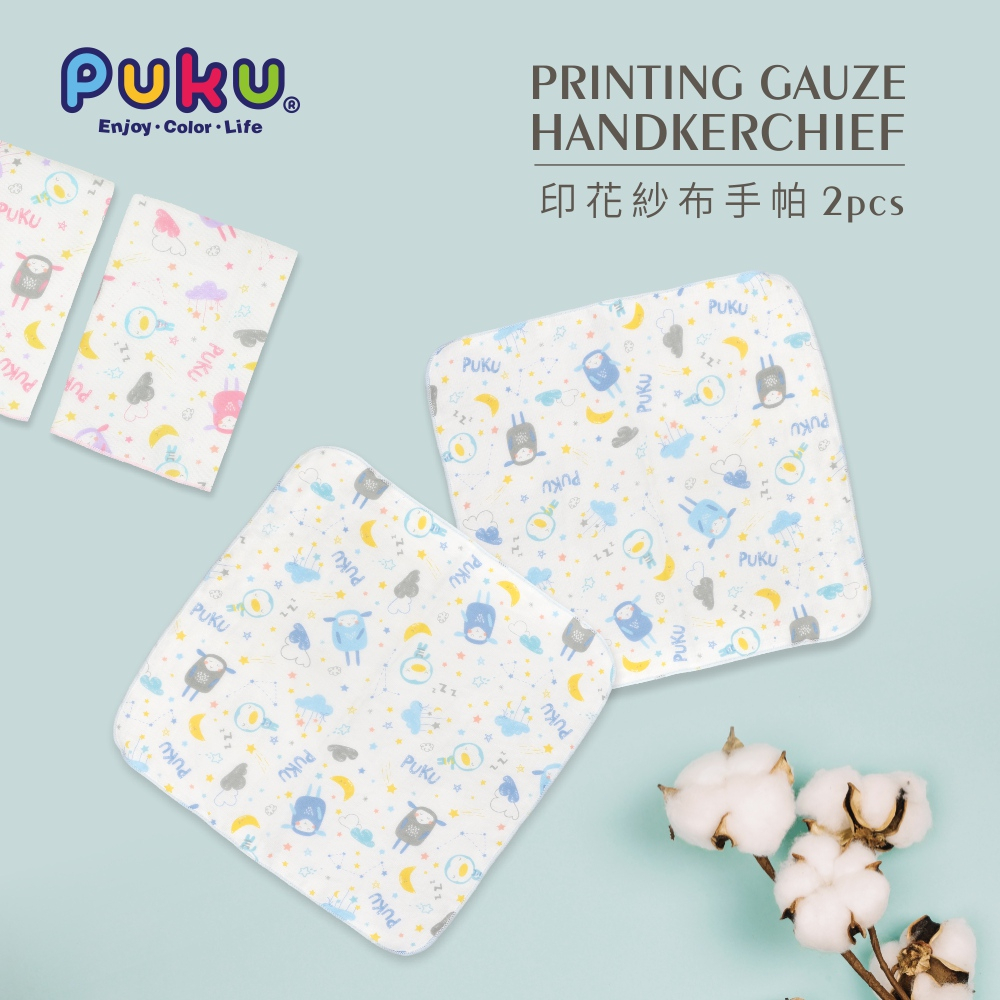 PUKU藍色企鵝 印花紗布手帕2入(四款)30X30cm水色|粉色|水眠羊|粉眠羊BibsPUKU 藍色企鵝官方旗艦店
