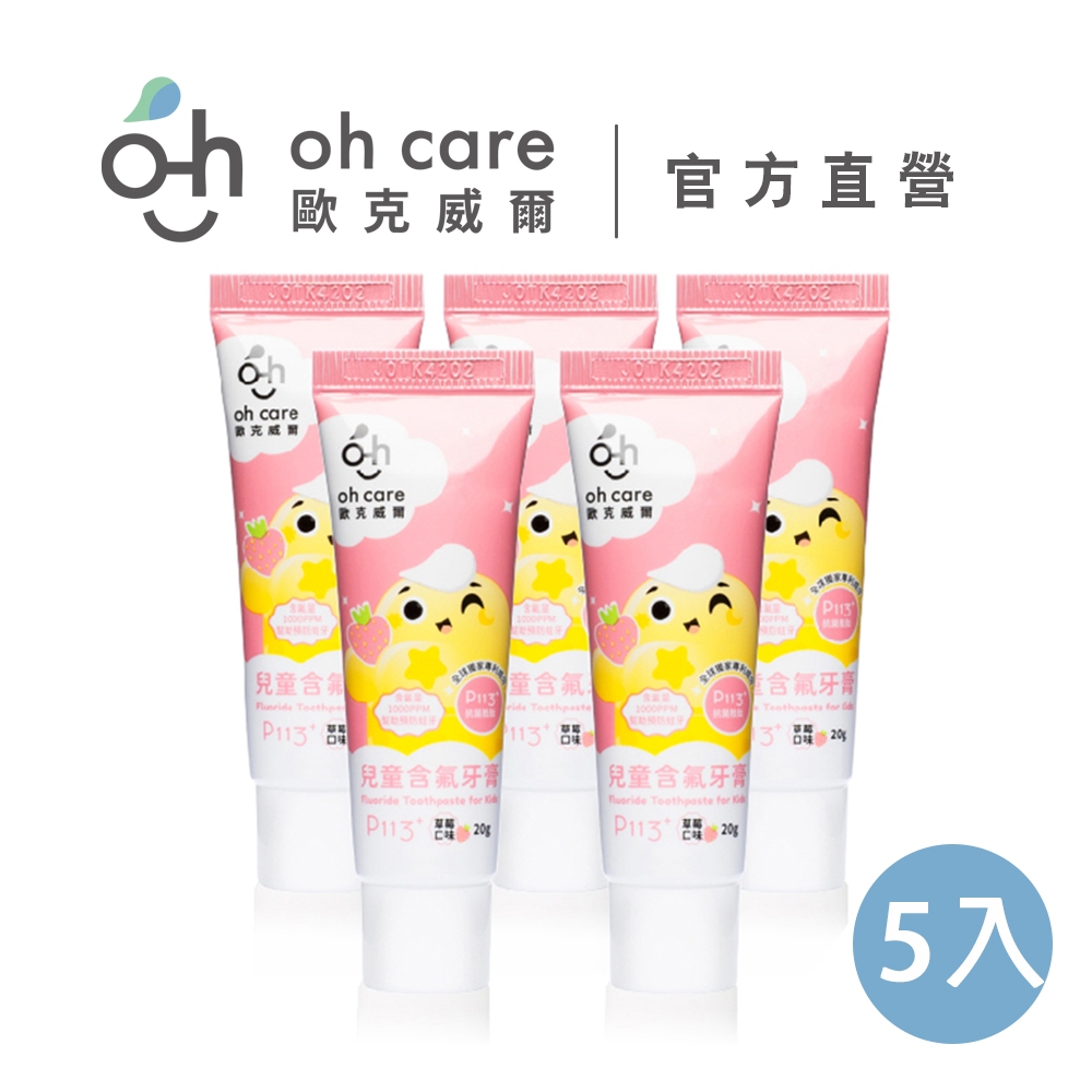 【oh care 歐克威爾】兒童含氟牙膏20g 5入組(草莓) |兒童牙膏 含氟牙膏 無氟牙膏 牙醫推薦 兒童牙膏