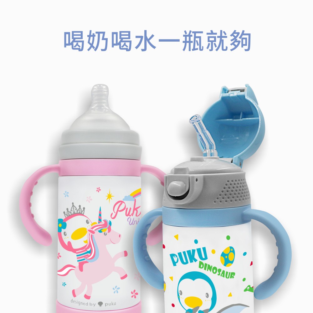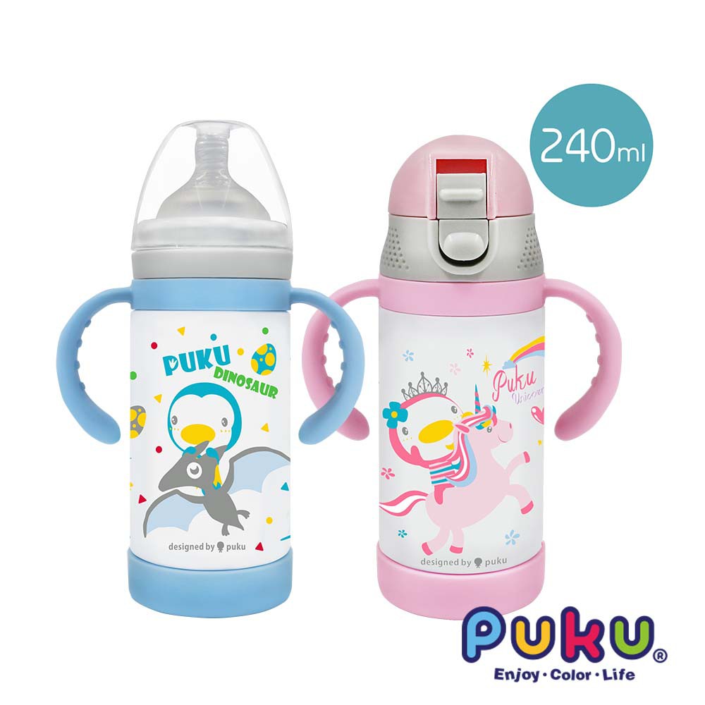PUKU藍色企鵝 多功能保溫奶瓶學習套組240ml (兩色)冒險時空|夢幻花園Bottle-feedingPUKU 藍色企鵝官方旗艦店