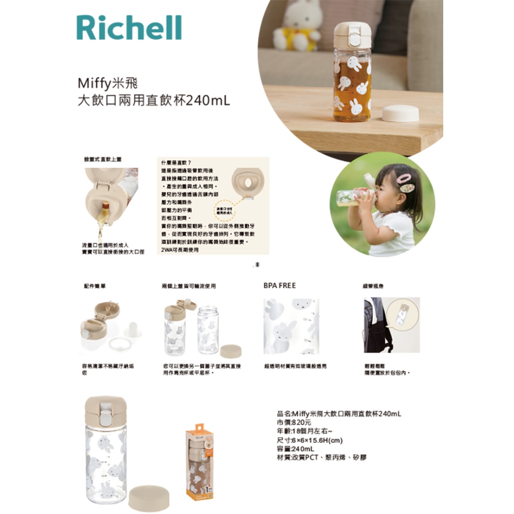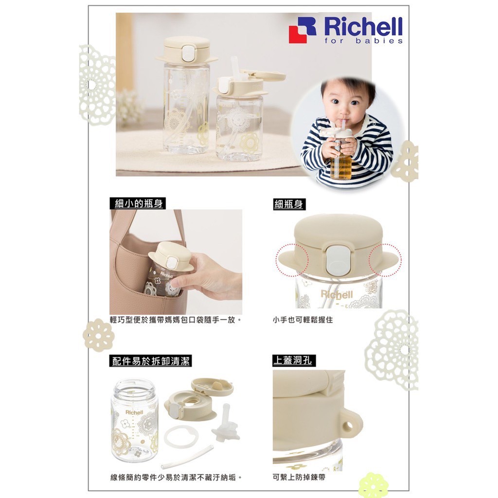 Richell 利其爾|朵朵開隨身型吸管水杯/水壺/學習杯(160ml/240ml)朵朵開160ml|朵朵開240mlUtensilsRichell台灣官方旗艦館