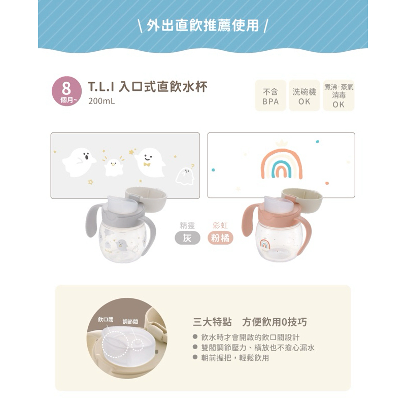 Richell 利其爾|TLI 第四代直飲水杯_200ML – 兩款 (小小精靈 /彩紅奇幻)直飲杯-小小精靈(淺灰)|直飲杯-彩紅奇幻(粉膚)UtensilsRichell台灣官方旗艦館