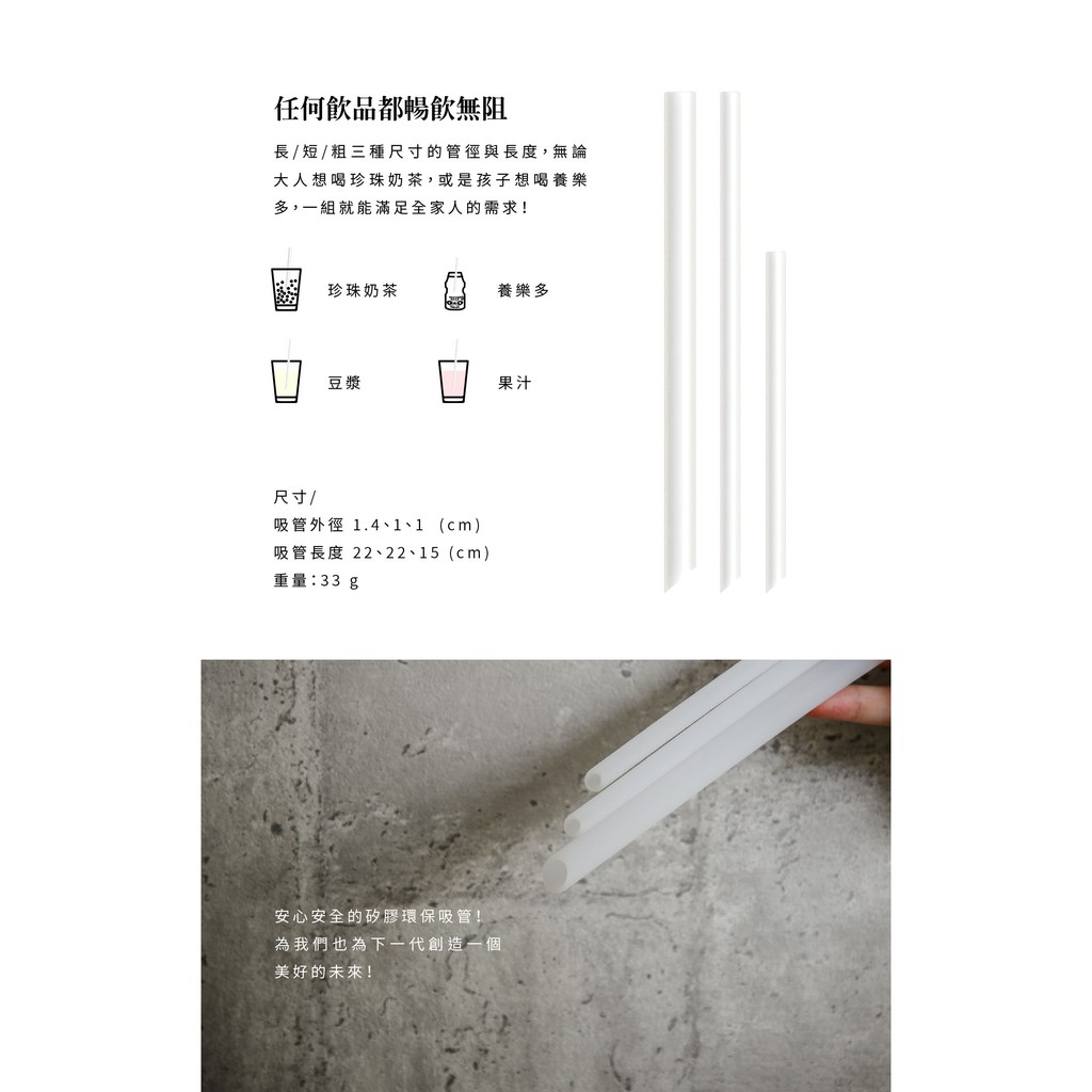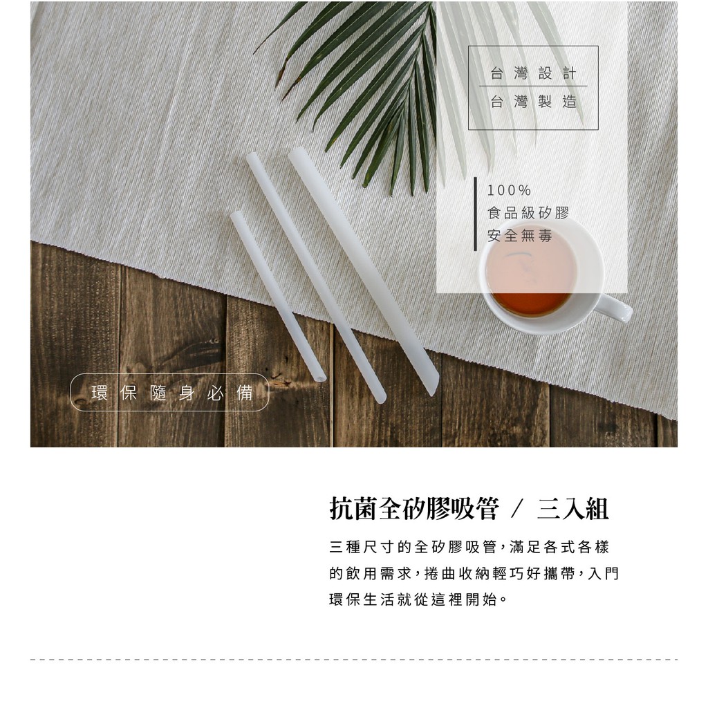 台灣 Besovida 摺摺吸管組 / 抗菌矽膠吸管 三入組 / 矽膠吸管清潔棒