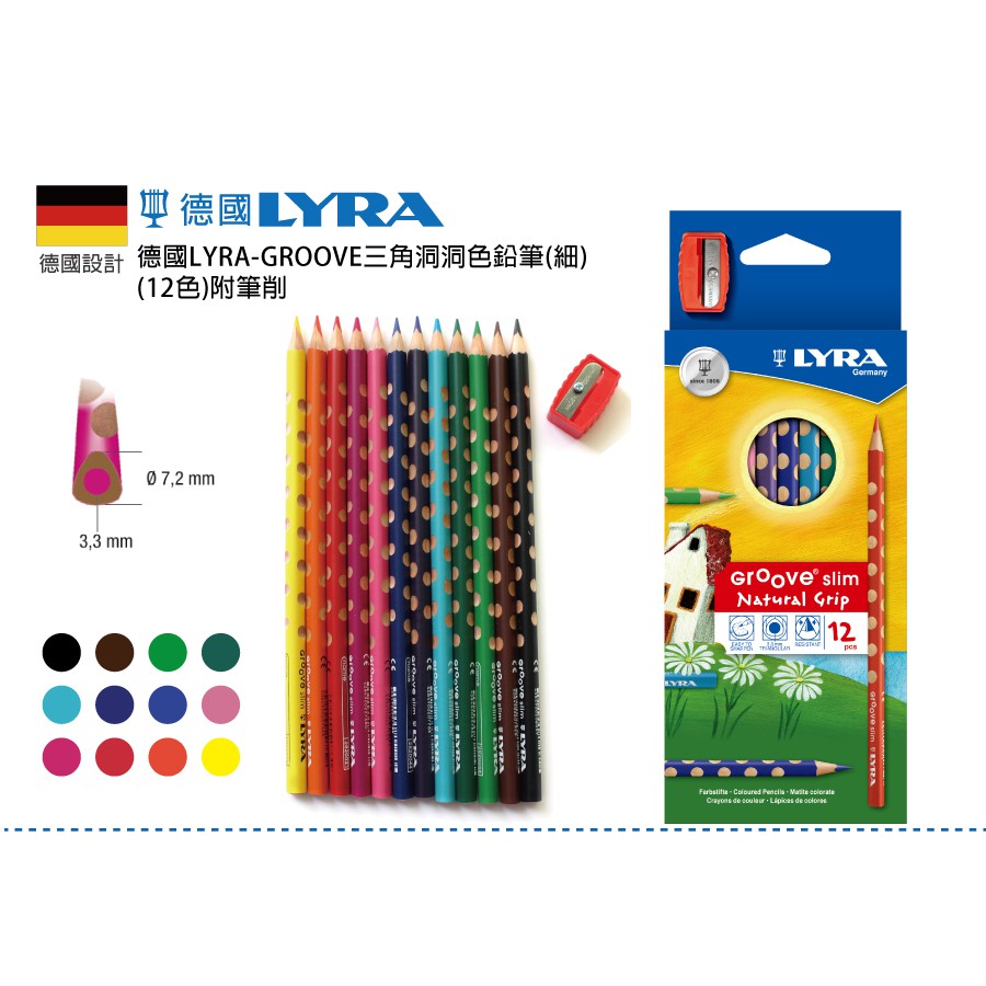 德國 LYRA Groove 三角洞洞色鉛筆(細) – 17.5cm – 12色入/24色入12支入盒裝|24支入盒裝Educational ToysnanaBABY寶寶生活精品
