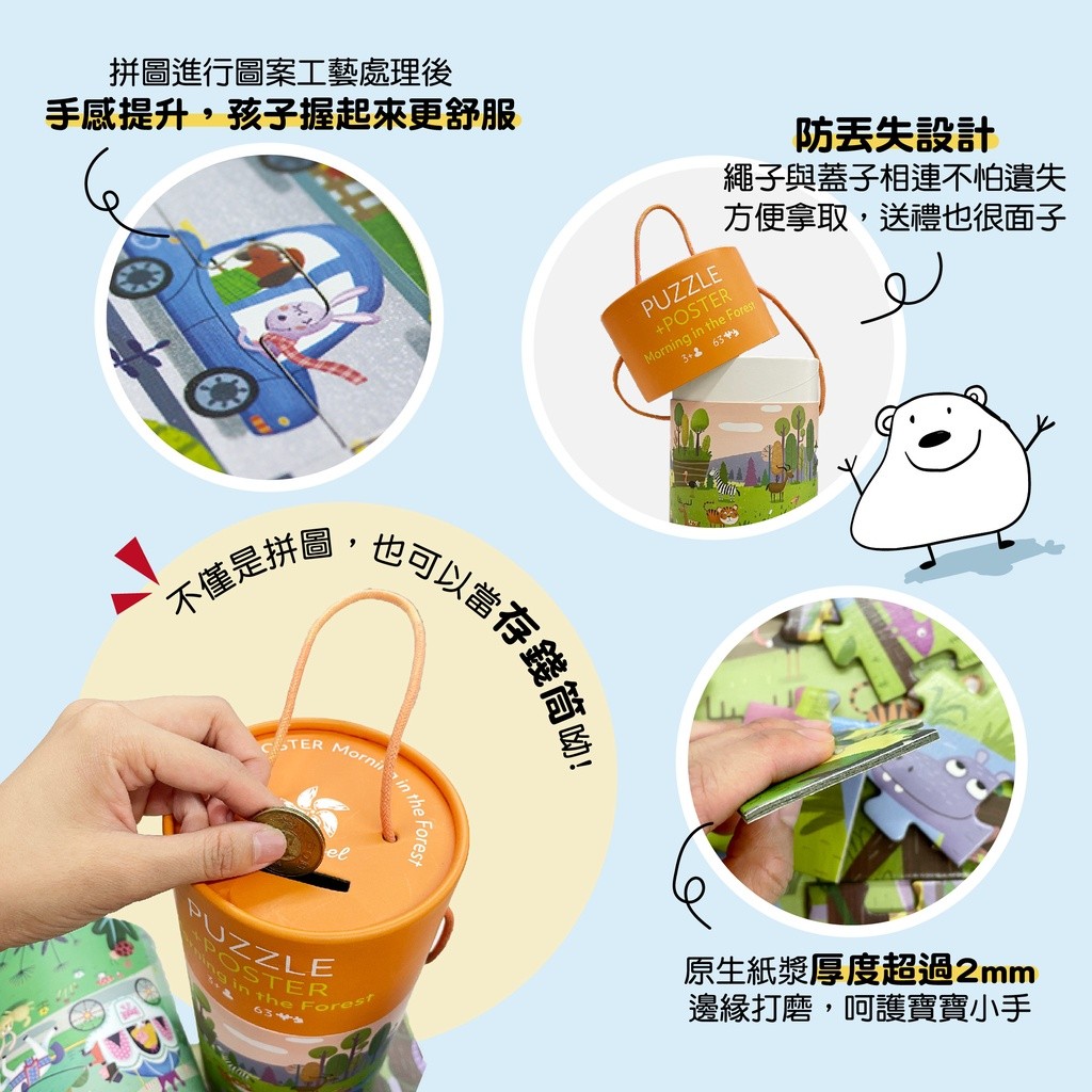 【送禮大方 63片/108片】拼圖 罐裝拼圖 大塊拼圖 早教玩具 兒童益智玩具 卡通拼圖 兒童禮物 學習教具 交換禮物【初階 63片】忙碌的城市|【初階 63片】公主城堡|【初階 63片】森林的早晨|【初階 63片】海盜航海記|【高階 108片】世界動物|【高階 108片】城市生活|【高階 108片】北美洲|【高階 108片】海底世界Educational ToysPeNi培婗