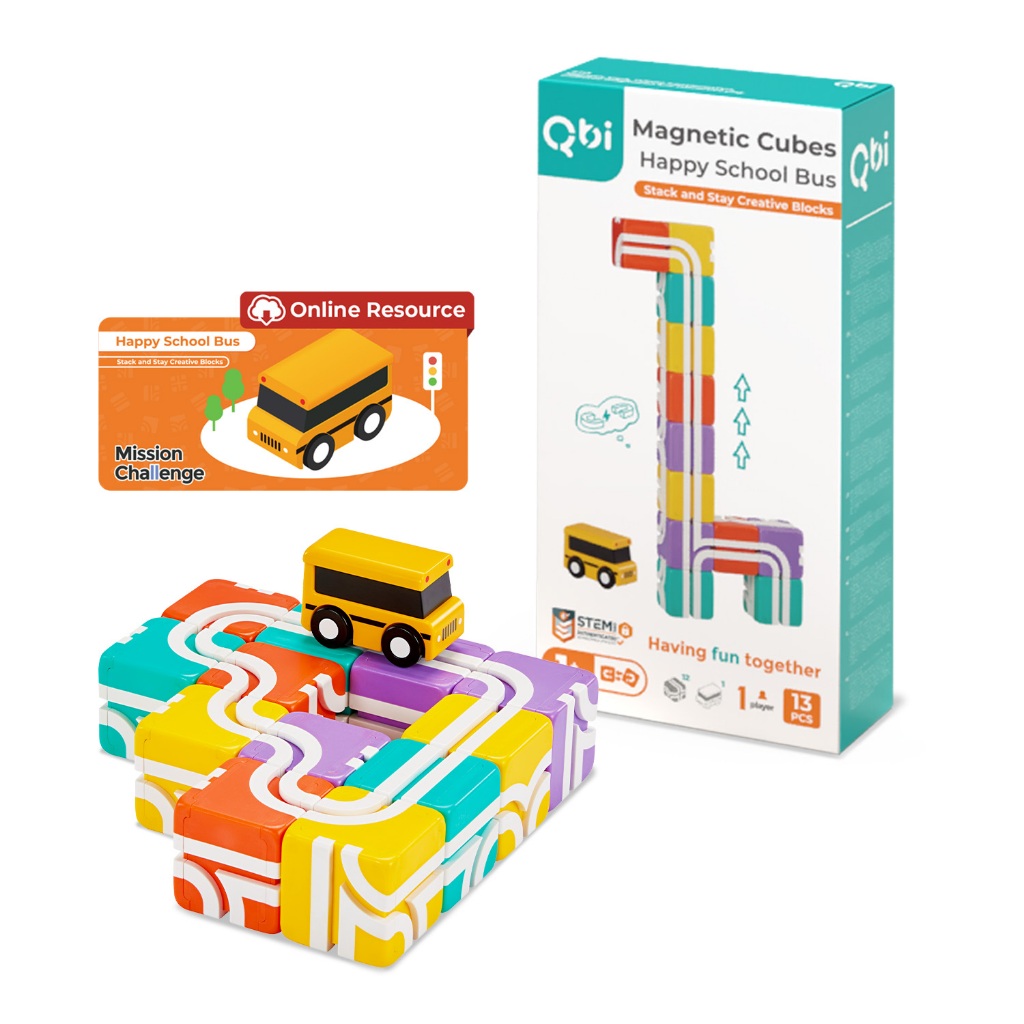 Qbi益智軌道磁吸玩具|『快樂上學去 方塊堆疊組 』(線上題卡版)1歲玩具 滿月周歲禮物 車車玩具 造型校車 兒童節玩具Qbi益智軌道磁吸玩具|『快樂上學去 方塊堆疊組 』(線上題卡版)1歲玩具 滿月周歲禮物 車車玩具 造型校車 兒童節玩具Toy VehiclesQbi 益智軌道磁吸玩具|官方直營