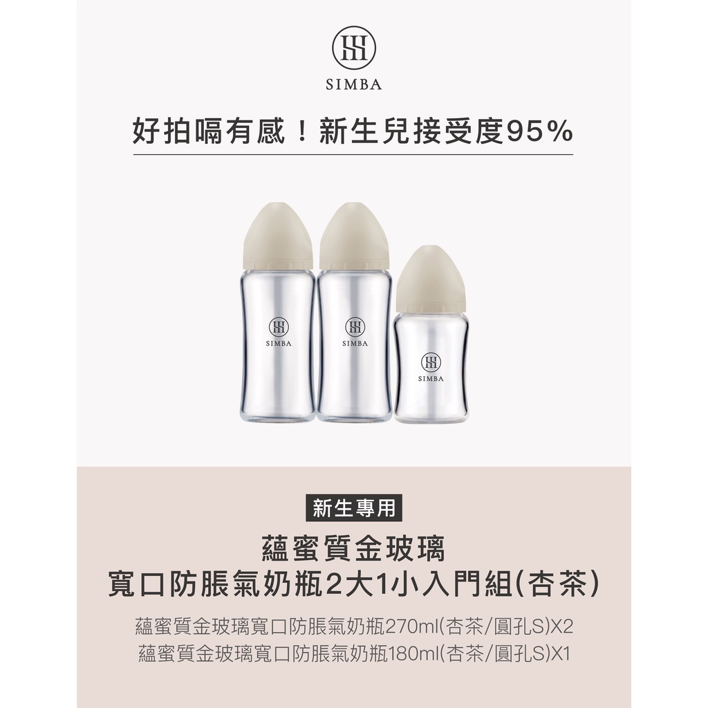 小獅王辛巴 蘊蜜質金玻璃寬口防脹氣奶瓶2大1小入門組-新生適用晨藍|栗粉|杏茶|綠沐|蒔黑|紫芙|波藍|治綠|覓粉|旦黃Bottle-feedingSimba小獅王辛巴 官方旗艦店