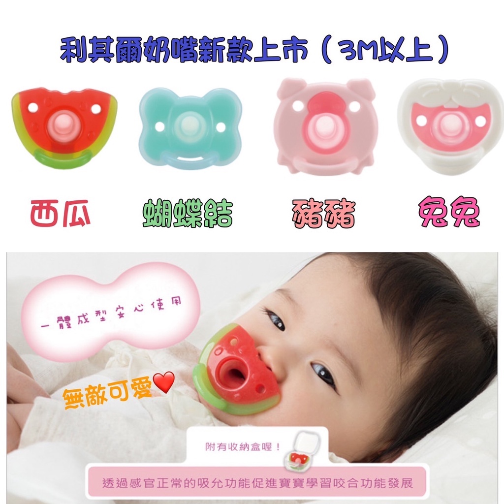 Richell 利其爾|全矽膠安撫奶嘴 繽紛樂系列 – 3M起 西瓜/蝴蝶結/豬豬/兔兔西瓜(3M以上)|蝴蝶結(3M以上)|豬豬(3M以上)|兔兔(3M以上)PacifiersRichell台灣官方旗艦館