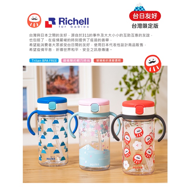Richell 利其爾|台日友好台灣限定版LC 320ml 吸管水杯 – 富士山/櫻花海/福氣翁(2022新款上市)福氣翁|富士山|櫻花海UtensilsRichell台灣官方旗艦館