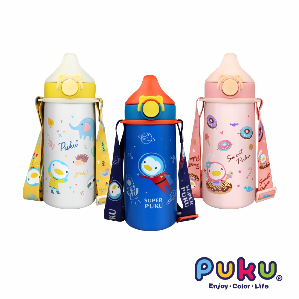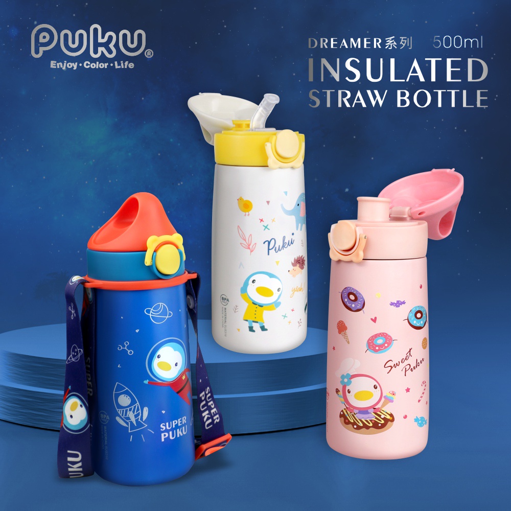 PUKU藍色企鵝 Dreamer不鏽鋼吸管保溫水壺(附直飲蓋)勇氣藍|幸福粉|活力黃UtensilsPUKU 藍色企鵝官方旗艦店