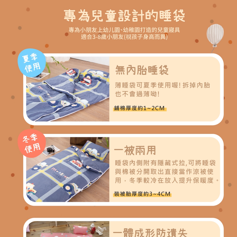 純棉兒童冬夏兩用鋪棉書包睡袋組 幼兒 小朋友 幼教 姓名貼 手提睡袋南瓜奇遇(綠)|南瓜奇遇(咖)|宇宙之旅|卡米洛|小灰熊|小圓點|叢林小獅子|旅行夢想家|貓貓俱樂部|多彩魚|花漾世界|快樂假期|恐龍樂園|海盜玩伴Mattresses & BeddingR.Q.POLO寢飾家居館