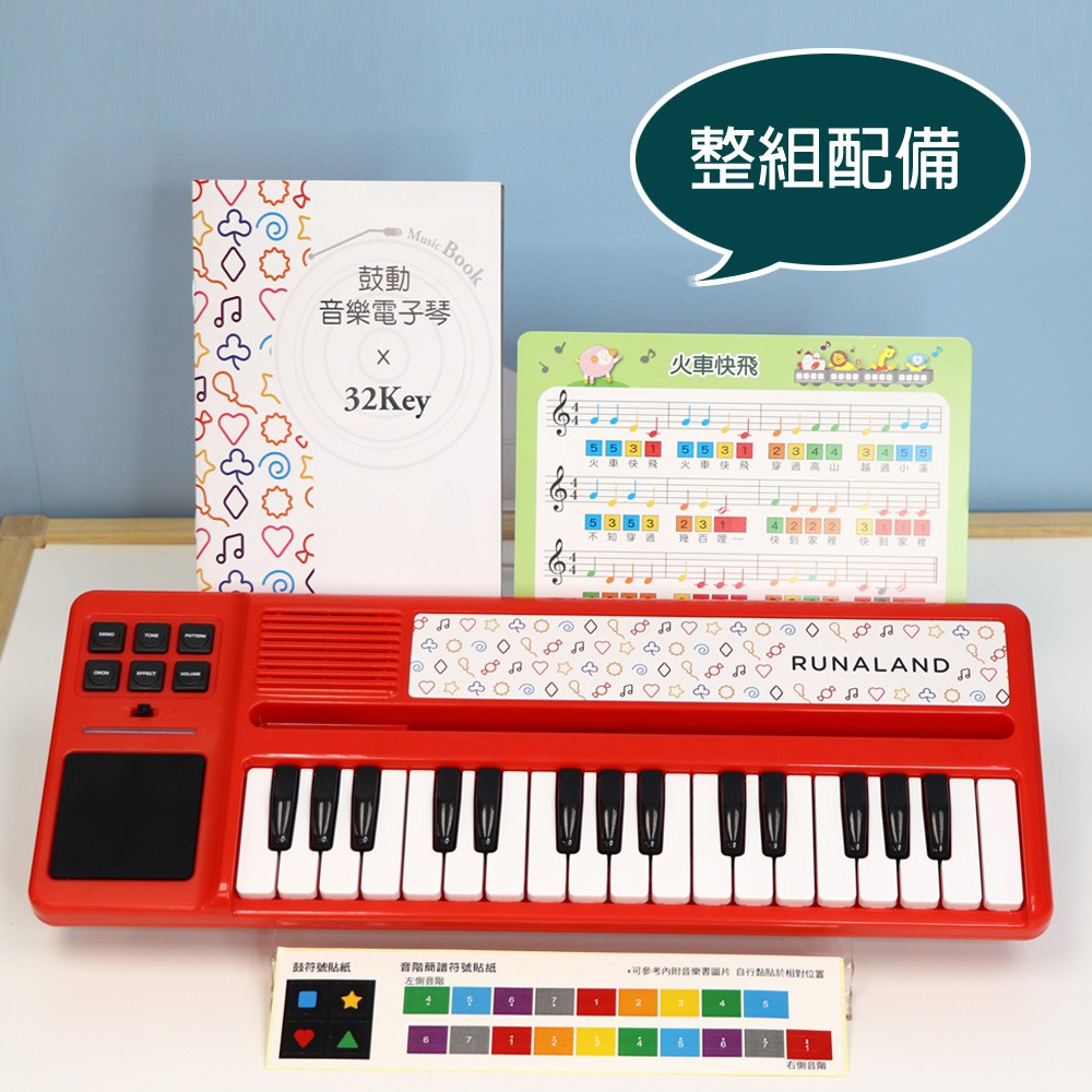 RUNALAND-32KEY鼓動音樂電子琴 (內含遊戲書+音階貼紙) 電子鼓 玩具鋼琴 兒童鋼琴 節奏電子琴 聖誕禮物