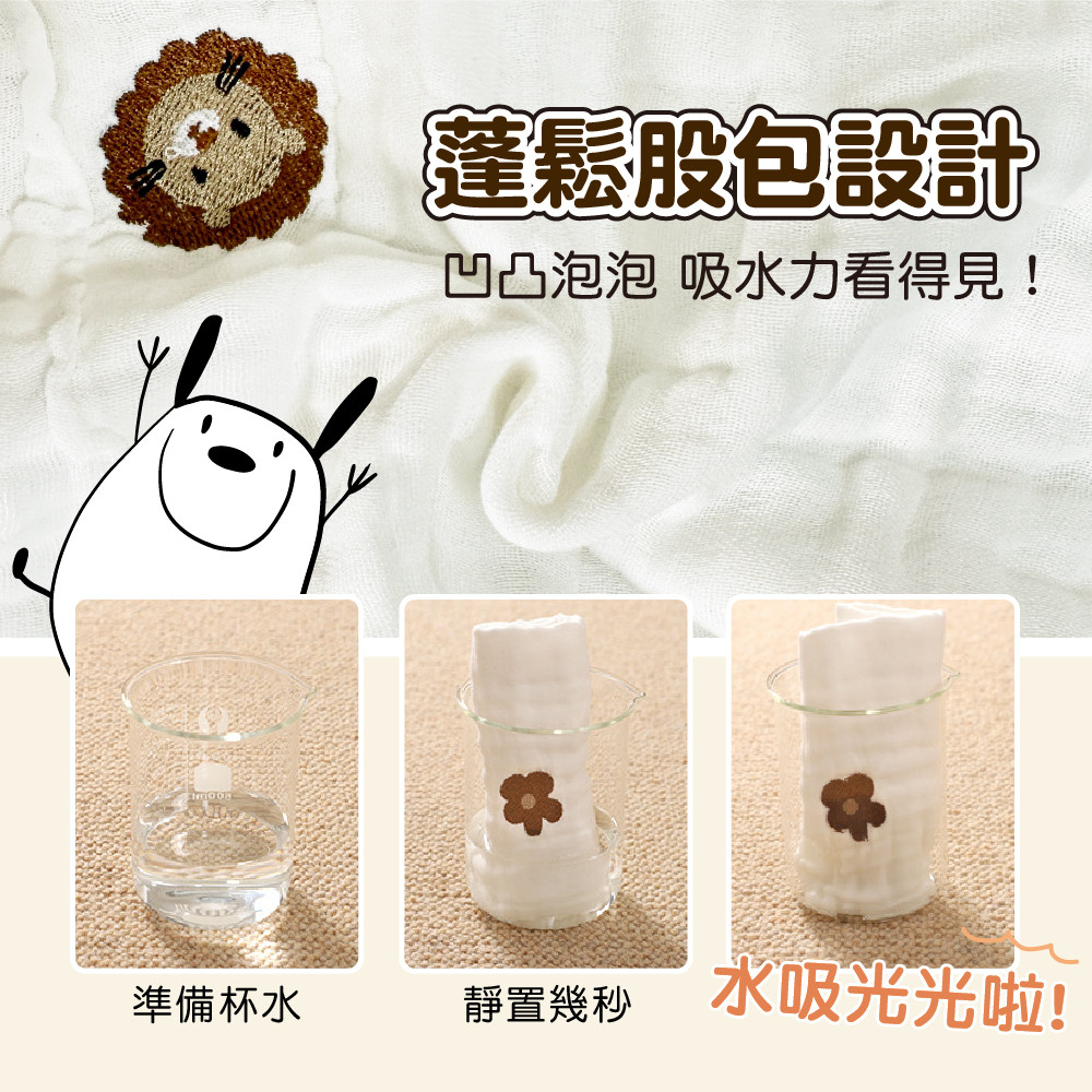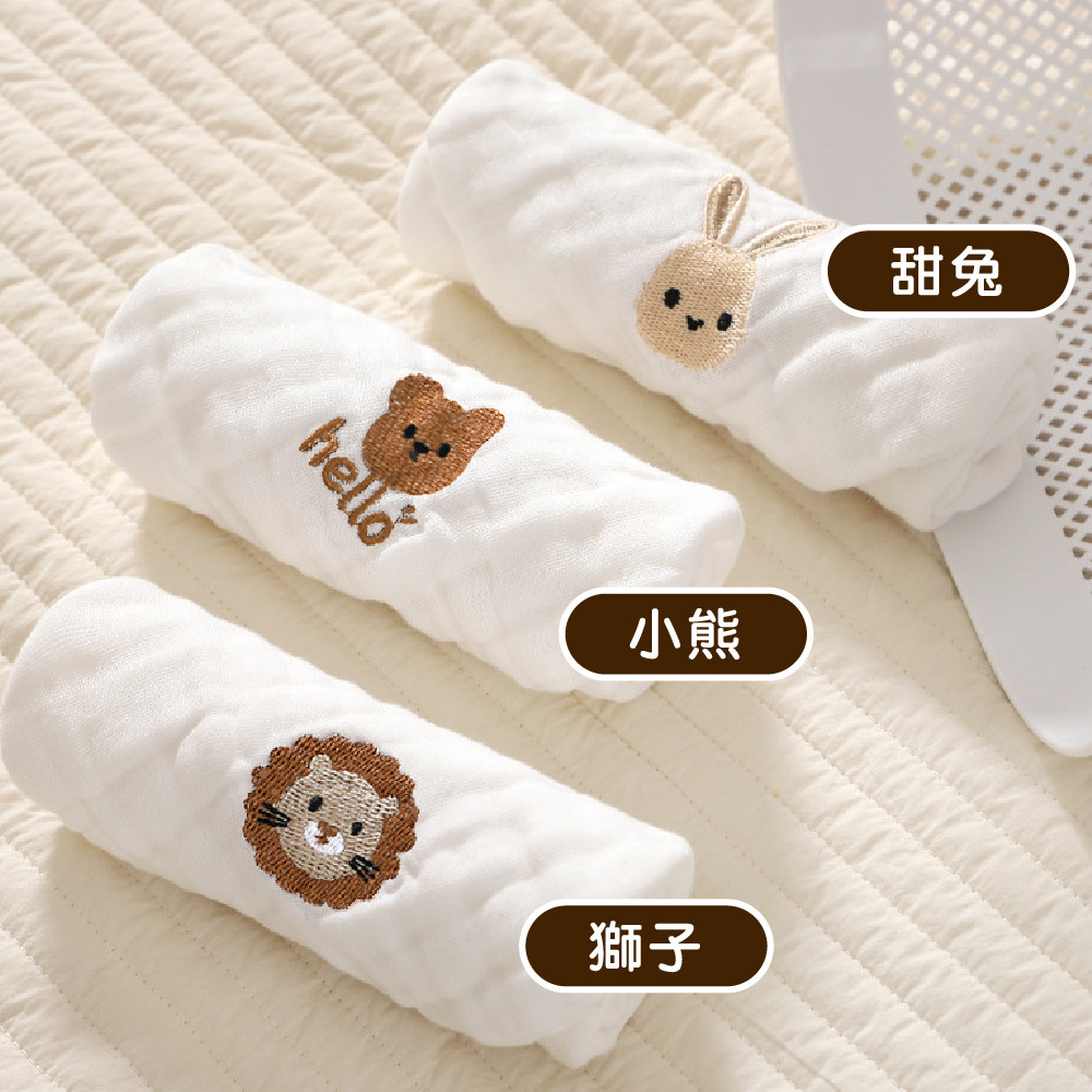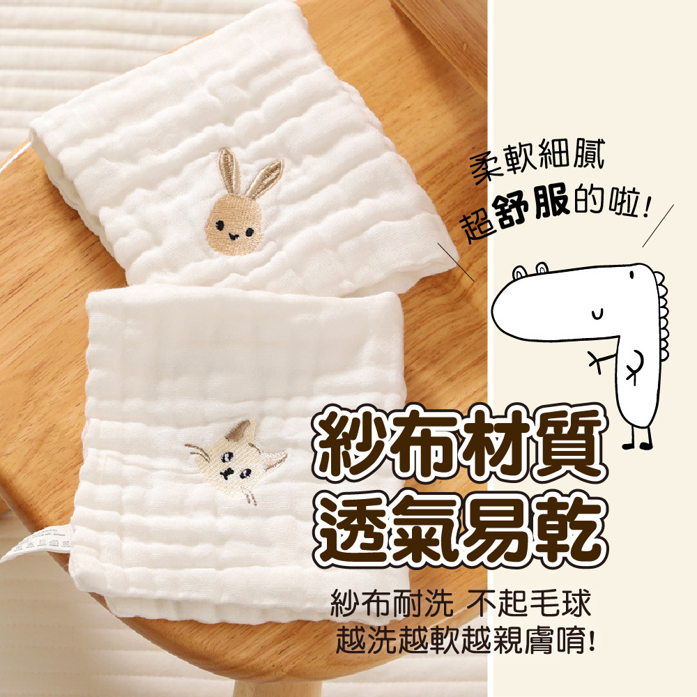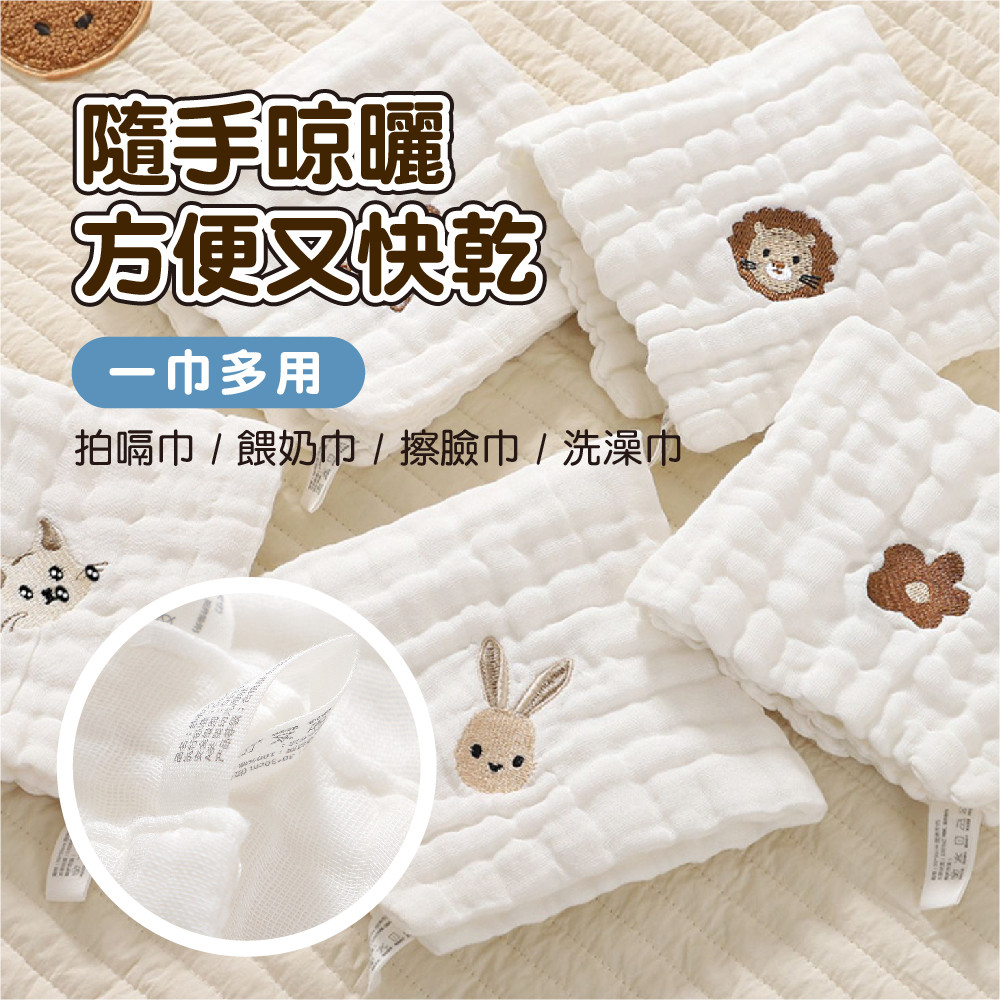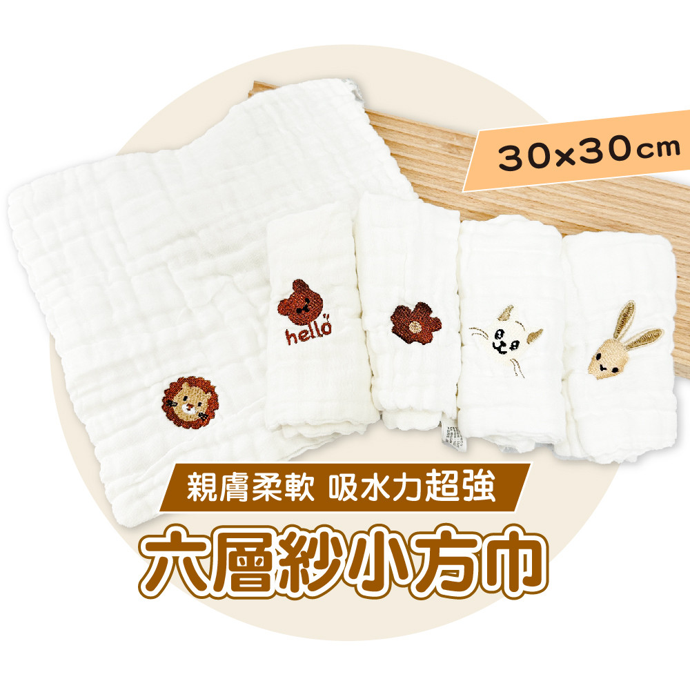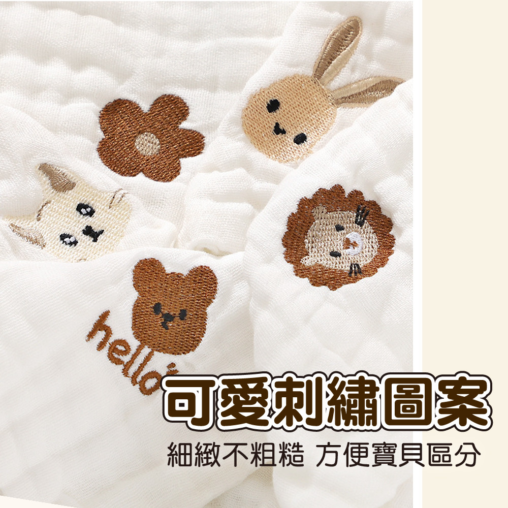 【刺繡款】六層紗純棉小方巾 紗布巾 嬰兒紗布巾 【澎鬆柔軟 吸水力超強】 嬰兒口水巾 紗布口水巾 喂奶巾 寶寶洗澡巾甜兔|小喵|獅子|小花|小熊BibsPeNi培婗