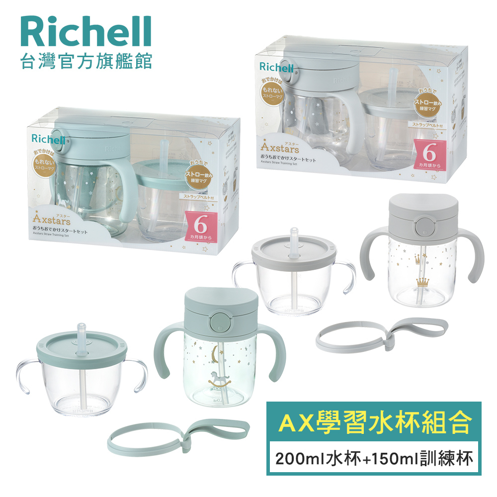 Richell 利其爾|AX系列 幻夢學習水杯組合200ml水杯+150ml訓練杯-兩款-星空/木馬(2023新款上市幻夢星空學習水杯組合|幻夢木馬學習水杯組合UtensilsRichell台灣官方旗艦館