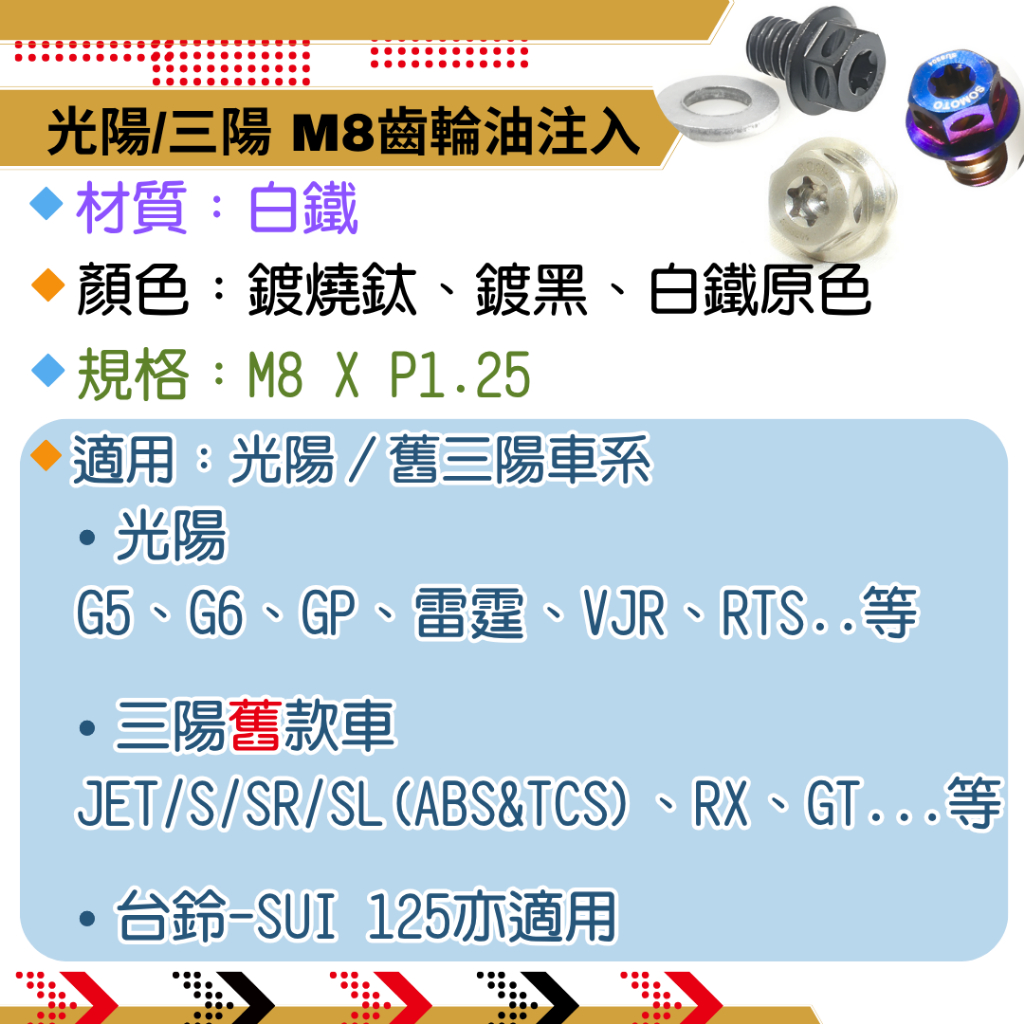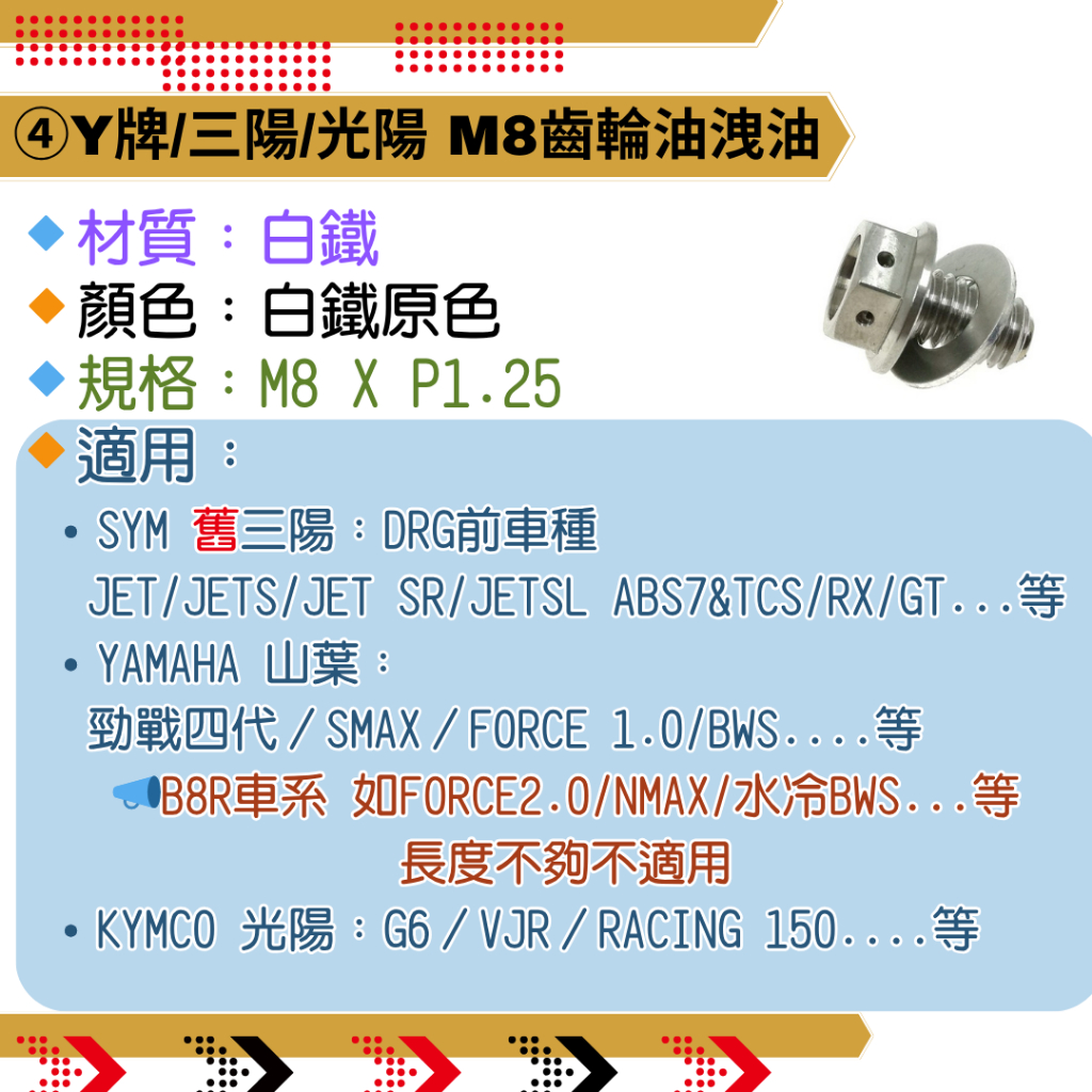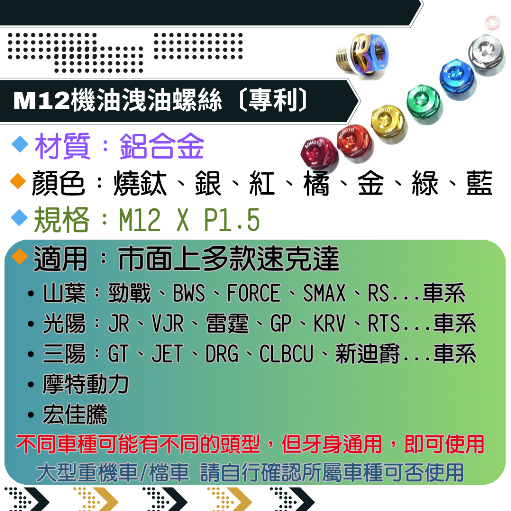 SOMOTO台灣製造【山葉/光陽/三陽 車種專用】機油/齒輪油 注入孔螺絲/強力磁石洩油螺絲 機油注入 機油洩油 齒輪油②機油-磁石洩油螺絲-鍍燒鈦色|②機油-磁石洩油螺絲-鍍黑色|③齒輪油 M8注入孔螺絲-鍍燒鈦色|③齒輪油 M8注入孔螺絲-鍍黑色|③齒輪油 M8注入孔螺絲-原色|④齒輪油 M8磁石洩油螺絲-原色|⑤齒輪油 M10注入孔螺絲-鍍燒鈦色|⑤齒輪油 M10注入孔螺絲-鍍黑色|⑤齒輪油 M10注入孔螺絲-原色|⑥齒輪油 M10磁石洩油螺絲-鍍燒鈦色|⑥齒輪油 M10磁石洩油螺絲-鍍黑色|⑥齒輪油 M10磁石洩油螺絲-原色|①機油 專利磁石洩油螺絲-鍍鈦色|①機油 專利磁石洩油螺絲-金色|①機油 專利磁石洩油螺絲-紅色|①機油 專利磁石洩油螺絲-銀色|①機油 專利磁石洩油螺絲-綠色|①機油 專利磁石洩油螺絲-橘色|①機油 專利磁石洩油螺絲-藍色|②機油-磁石洩油螺絲-原色OthersMIT台灣製造|SOMOTO螺絲全系列|美督機車油官方唯一授權網路販售|品質透明