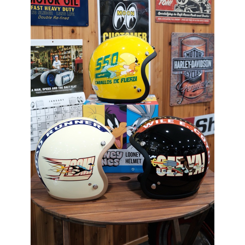 華納兄弟 x Gallop Kustom Kulture 嗶嗶鳥與威利狼款 聯名3/4復古安全帽-黑色L-57cm|XL-58cm|S-55cm|M-56cmMooneyes Taiwan