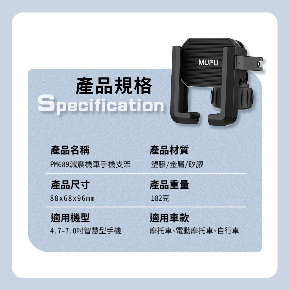 MUFU 減震機車手機支架 PM689 (搭配行車紀錄 掌握後方車況)MUFU 減震機車手機支架 PM689 (搭配行車紀錄 掌握後方車況)Phone HoldersMUFU旗艦館