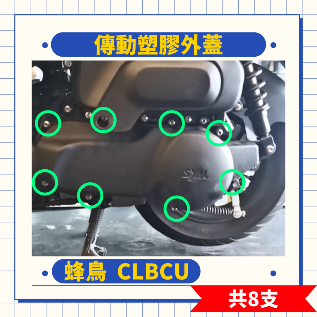 SOMOTO台灣製造【CLBCU 蜂鳥】全車螺絲組|黑化|鍍鈦|鍍燒鈦|原廠直上|傳動外蓋|空濾外蓋|風扇外蓋34.前叉三角台,鍍燒鈦色|16.傳動塑膠外蓋,白鐵原色|16.傳動塑膠外蓋,鍍燒鈦色|17.空濾外蓋,白鐵原色|17.空濾外蓋,鍍燒鈦色|27.風扇外蓋,白鐵原色|27.風扇外蓋,鍍燒鈦色|34.前叉三角台,白鐵原色|16.傳動塑膠外蓋,黑化鍍黑|17.空濾外蓋,黑化鍍黑|24.後土除固定,白鐵原色|24.後土除固定,鍍燒鈦色|24.後土除固定,黑化鍍黑|27.風扇外蓋,黑化鍍黑|32.坐墊固定&扣,白鐵原色|32.坐墊固定&扣,鍍燒鈦色|32.坐墊固定&扣,黑化鍍黑|34.前叉三角台,黑化鍍黑Body & FrameMIT台灣製造|SOMOTO螺絲全系列|美督機車油官方唯一授權網路販售|品質透明