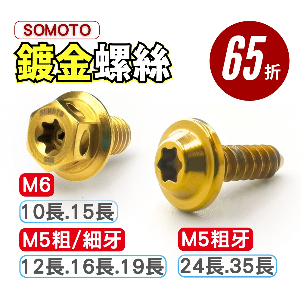 SOMOTO 台灣製造 白鐵材質 M4/M5/M6 金色螺絲 鐵板牙 外觀車殼/儀表板/胸蓋/龍頭 數量有限 售完為止M5*19 (細牙)|M4*15 (JET燈殼用)|M5*12 (粗牙)|M5*16 (粗牙)|M5*19 (粗牙)|M5*24 (粗牙)|M5*35 (粗牙)|M6*10|M6*15|M5*12 (細牙)|M5*16 (細牙)OthersMIT台灣製造|SOMOTO螺絲全系列|美督機車油官方唯一授權網路販售|品質透明