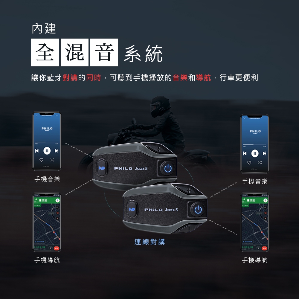 【Philo 飛樂】Jazz5 全混音 安全帽藍芽耳機 保固兩年 500公尺對講距離 藍牙5.2 音樂共享 官方原廠直送鈦鋼灰|丁香紫|粉蝶藍Philo飛樂|arlink雅聯【官方旗艦店】