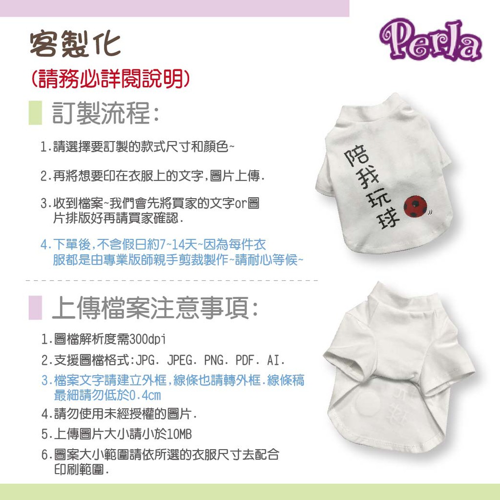 Perlapets【台灣製】客製化狗衣 狗T Shirt 團體服 寵物服飾 貓衣 一件出貨 一件就做 寵物服飾XS,桃紅色|XS,藍綠色|XS,白色|XS,黑色|XS,灰色|S,桃紅色|S,藍綠色|S,白色|S,黑色|S,灰色|SM,桃紅色|SM,藍綠色|SM,白色|SM,黑色|SM,灰色|M,桃紅色|M,藍綠色|M,白色|M,黑色|M,灰色|L,桃紅色|L,藍綠色|L,白色|L,黑色|L,灰色|XL,灰色|2XL,灰色|2XL,藍綠色|XL,桃紅色|2XL,黑色|XL,白色|XL,藍綠色|2XL,桃紅色|2XL,白色|XL,黑色|S,紅色|2XL,紅色|SM,紅色|L,紅色|XS,紅色|M,紅色|XL,紅色Pet ClothingPerlapets 普樂菓寵物精品館