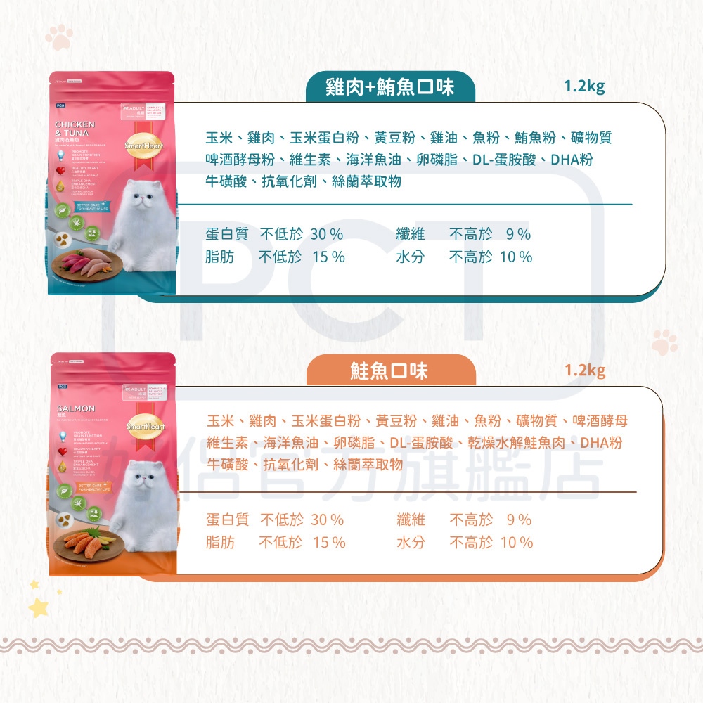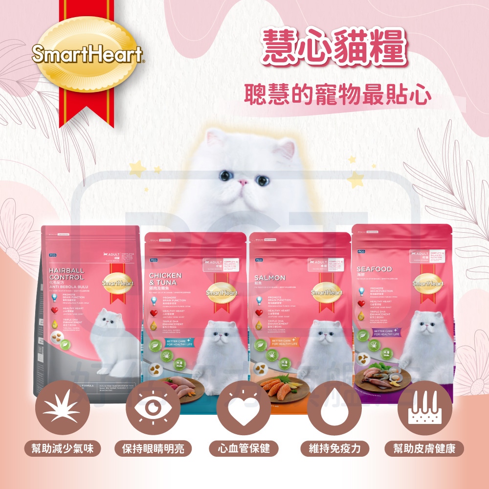 SmartHeart 慧心貓糧系列 1.1-1.2KG鮭魚-1.2KG|雞肉+鮪魚-1.2KG|海鮮-1.2KG|化毛-1.1KGCat FoodPCT好侶官方旗艦店