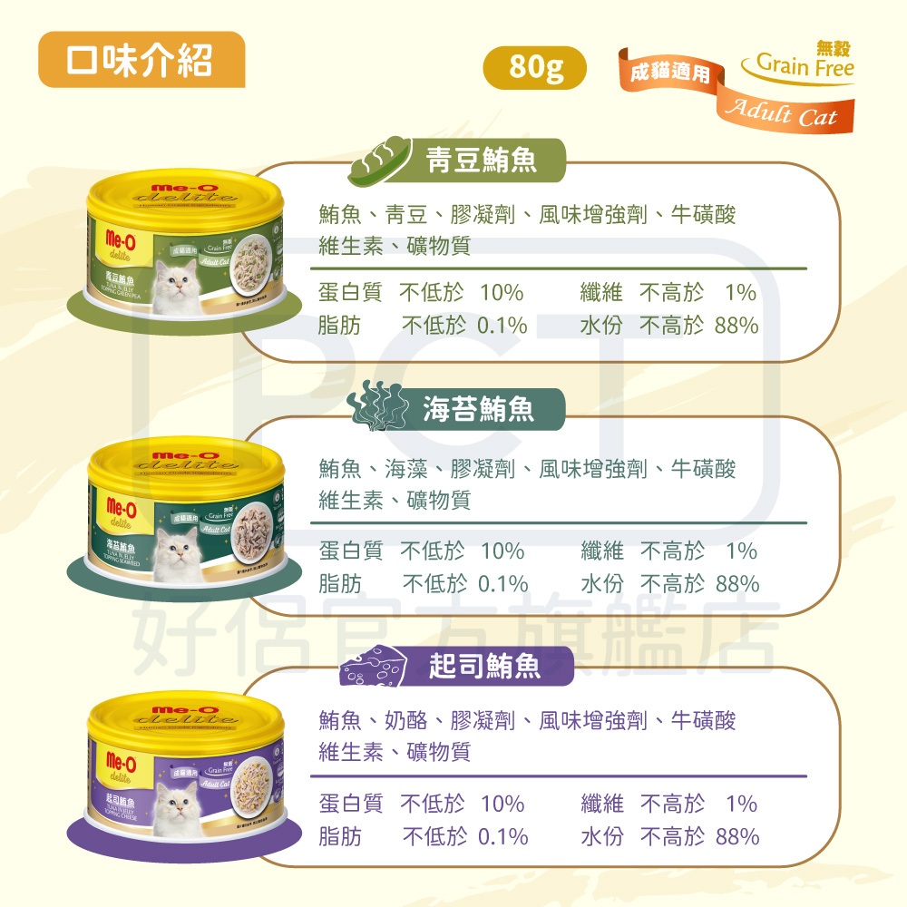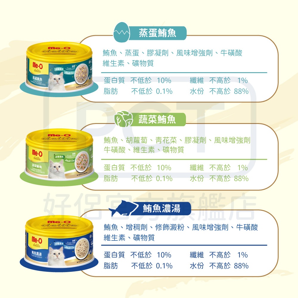 Me-O 咪歐小確幸貓罐系列 80G(單罐)羊奶雞肉慕斯-80G(單罐)|鮪魚濃湯-80G(單罐)|蟹棒嫩雞-80G(單罐)|青豆鮪魚-80G(單罐)|海苔鮪魚-80G(單罐)|蔬菜鮪魚-80G(單罐)|起司鮪魚-80G(單罐)|蒸蛋鮪魚-80G(單罐)Cat FoodPCT好侶官方旗艦店