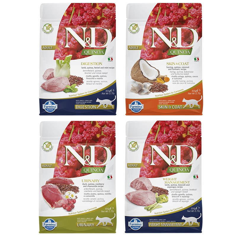 法米納 Farmina【ND藜麥無穀系列】貓飼料 貓糧 貓乾糧【QC 藜麥無穀 300克 300g】貓用泌尿道舒壓保健-鴨肉蔓越莓300G|貓用腸胃道保健-羊肉茴香 300G|貓用皮毛保健-鯡魚椰子 300G|貓用體重管理-羊肉蘆筍 300G|貓用皮毛保健-鵪鶉椰子300GCat FoodPETZOO法米納寵物食品旗艦店