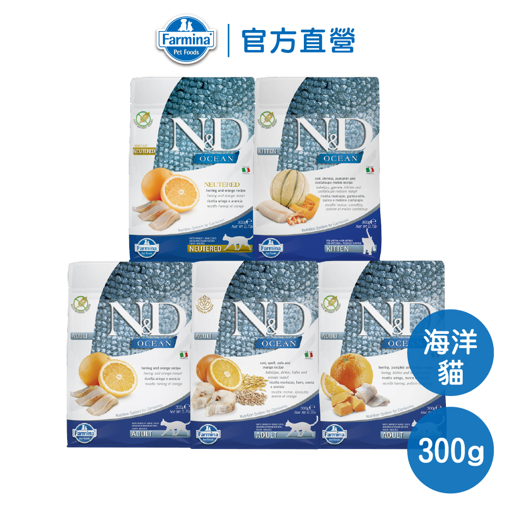 法米納 Farmina【ND天然海洋系列】 貓糧 貓飼料 貓乾糧【OC無穀/低穀系列 300g】OC4 室內/結紮貓無穀鲱魚甜橙|OC0 幼貓無穀鱈魚南瓜|OC1 頂級無穀鲱魚甜橙|OC2 無榖鯡魚南瓜|OC3 低穀鱈魚甜橙Cat FoodPETZOO法米納寵物食品旗艦店